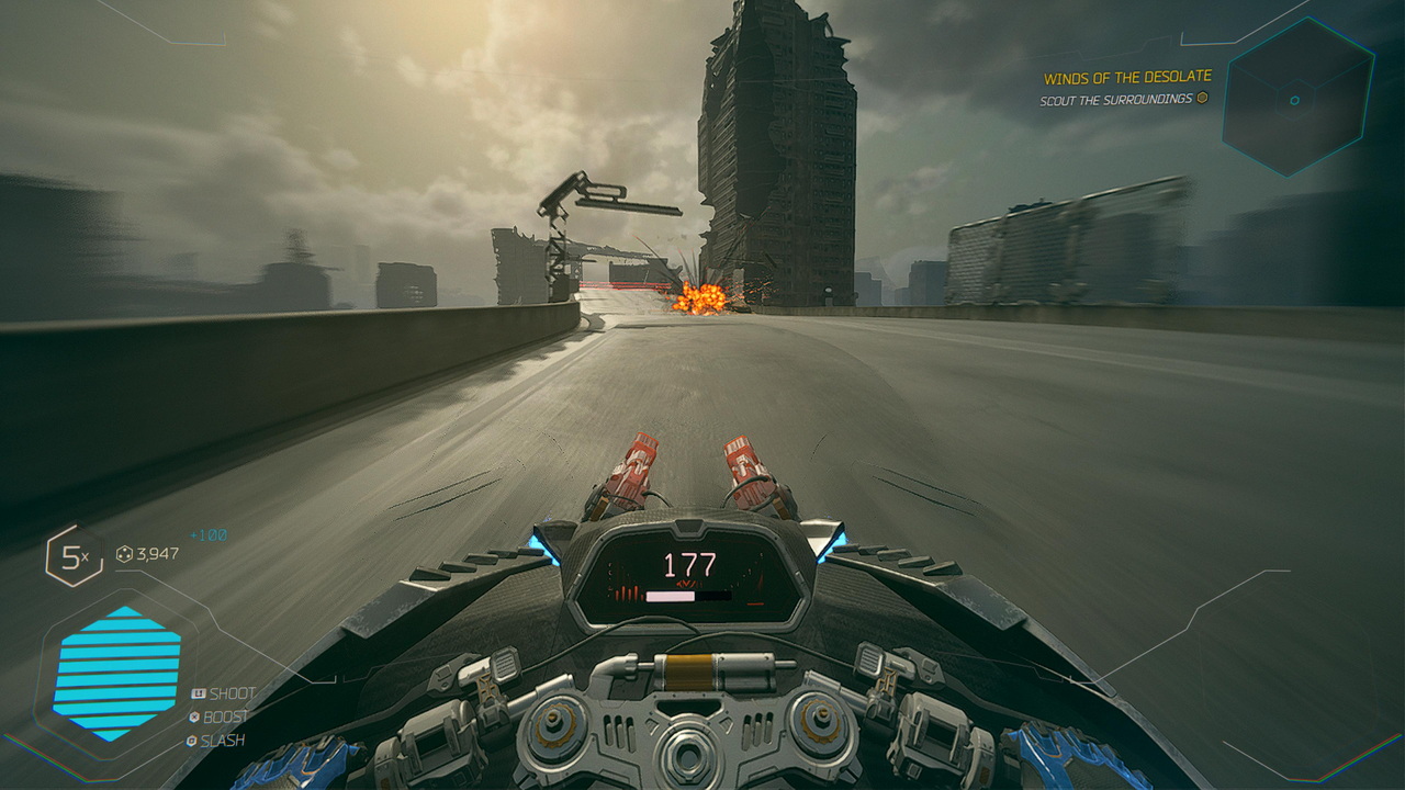 Το Ghostrunner 2 έρχεται μετά από τρία χρόνια να συνεχίσει την ιστορία του πρώτου μέρους, παραμένοντας πιστό στις action platforming ρίζες του, αλλά φέρνοντας μαζί του και μερικές αλλαγές. Το παιχνίδι είναι πρώτου προσώπου, ο ήρωας ξεκινάει μ’ ένα σπαθί, με το οποίο μπορεί να επιτεθεί, να κάνει parry και στην πορεία έρχονται και άλλα δευτερεύοντα όπλα και abilities για να εμπλουτίσουν το οπλοστάσιο. Όσοι δεν ασχολήθηκαν με το πρώτο παιχνίδι, ενδεχομένως να πάθουν ένα μικρό πολιτισμικό σοκ από την δυσκολία του. Αν ο ήρωάς μας δεχθεί έστω ένα hit, είτε μιλάμε για αντίπαλη κατάνα ή είτε για σφαίρες, τότε χάνουμε αμέσως και έπεται ένα restart-respawn στο πιο πρόσφατο checkpoint. Δεν χρειάζεται να περάσουν πάνω από πέντε λεπτά για να αντιληφθεί ένας νέος χρήστης ότι σε αυτό το παιχνίδι πρέπει να κινείται συνεχώς και να είναι και με τα δύο δάχτυλα έτοιμος να πατήσει τις σκανδάλες για parry ή attack. Στην πορεία θα αντιληφθεί ότι και το παρκούρ μπορεί να ανεβάσει την δυσκολία και να απαιτήσει από τον παίκτη συνδυασμούς που εκ πρώτης όψεως μοιάζουν τρελοί. Υπήρχαν στιγμές όπου και εμείς μπορεί να θέλαμε να σπάσουμε το κοντρόλερ, αλλά όσο προχωρούσαμε στα επόμενα κεφάλαια, τόσο επιμέναμε να βγάλουμε το ακόμη πιο δύσκολο επίπεδο.