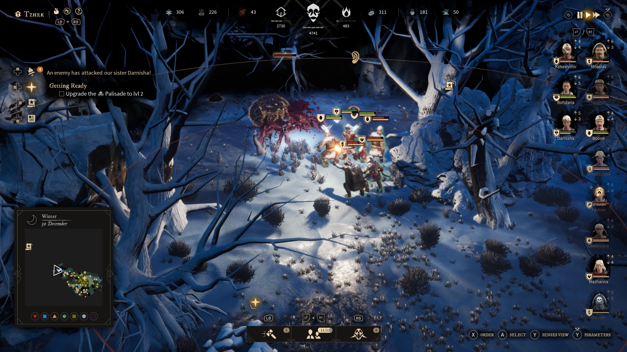 Είναι μια ενδιαφέρουσα δυναμική, αλλά και πάλι… υπάρχει το «αλλά». Η μάχη δεν είναι ιδιαίτερα ανεπτυγμένη, οπότε μπορεί να κρατάει για ώρα όμως το ενδιαφέρον του παίκτη δύσκολα θα κρατηθεί αμείωτο στη διάρκειά της. Πέραν των απλών μαχητών (τοξότες, τσεκουροφόροι κλπ) υπάρχουν και μάγοι με διάφορα ξόρκια (αμυντικά κι επιθετικά) που δίνουν μια επιπλέον διάσταση, όμως οι απαιτήσεις για κάθε ξόρκι είναι υψηλές κι έτσι δύσκολα θα χρησιμοποιούνται συχνά. Οπότε, το αποτέλεσμα είναι κάπως βαρετή μάχη, κάνοντας ακόμη και τις σημαντικές στιγμές να μοιάζουν ασήμαντες. Εξίσου ασήμαντο μοιάζει και το όλο κομμάτι του gord. Το κομμάτι city-building σταματάει αρκετά γρήγορα σε ένα κεφάλαιο και ο χώρος είναι περιορισμένος, οπότε ακόμη και τα βασικά κτήρια μετά βίας χωράνε παραμένοντας σε προσβάσιμο σημείο. Ακόμη, οι κάτοικοι έχουν μοναδικές προσωπικότητες μεν, αλλά δεν κάνουν κάποια προσπάθεια να έρθουν πιο κοντά με τους άλλους. Μπορεί το ίδιο ζεύγος ατόμων να βρίσκεται σε περιπολία για σερί αποστολές, όμως ουδεμία μεταξύ τους σχέση θα αναπτυχθεί. Πρόκειται για μια κλειστή κοινωνία που παλεύει για την επιβίωση ενάντια σε πραγματικά τέρατα, οπότε στοιχειώδη κομμάτια φιλίας ή αντιπάθειας θα ήταν ευπρόσδεκτα.