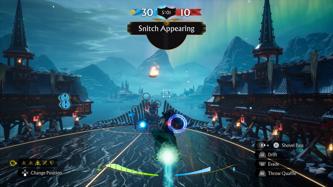 Παρόλο που το Quidditch Champions κάνει ξεκάθαρη τη δουλειά του κάθε παίκτη, η εναλλαγή μεταξύ ρόλων σε ένα ματς μπορεί να κάνει μια κατάσταση αρκετά άβολη. Ο εκάστοτε ρόλος φέρει τις δικές του ιδιαιτερότητες στα του χειρισμού, πράγμα που διαχειρίζεται κομματάκι δύσκολα όταν παίζουμε ένα ματς με υψηλή πρόκληση, και ιδιαίτερα όταν βρισκόμαστε πίσω στο σκορ και υπό πίεση στην τρέχουσα φάση. Δύο χαρακτηριστικά παραδείγματα έρχονται γρήγορα στο μυαλό: ενόσω χειριζόμαστε chaser και προσπαθούμε να κυνηγήσουμε τον αντίπαλο ώστε να του κλέψουμε την μπάλα, χρειάζεται να αλλάξουμε ρόλο και να αναλάβουμε τον keeper. Οι δύο αυτοί ρόλοι έχουν διαφορετικά πλήκτρα αποφυγής χτυπημάτων από Bludgers, αλλά και εντελώς διαφορετικό χειρισμό πλοήγησης. Επίσης, καθώς ακολουθούμε το Golden Snitch που αφήνει ευδιάκριτα δαχτυλίδια χρυσού καπνού στο πέρασμά του, τα οποία γεμίζουν τη σχετική μπάρα που υποδεικνύει πότε μπορούμε να πιάσουμε τη χρυσή σφαίρα, θα χρειαστεί να αλλάξουμε ρόλο σε beater ώστε να επιχειρήσουμε να ρίξουμε το hp του αντίπαλου seeker που έχει τη δική του μπάρα περισσότερο γεμισμένη από τη δική μας. Από τη μια ο seeker θέλει πολλή προσοχή στον χειρισμό του, καθώς η χρυσή σφαίρα πετά αλλοπρόσαλλα και το να περάσουμε μέσα από όλα τα δαχτυλίδια καπνού είναι μεγάλη πρόκληση από μόνη της, κι από την άλλη ο beater χρειάζεται να κάνει summon κάποιο Bludger και στη συνέχεια να κυνηγήσει τον παίκτη που θέλει να πετύχει με αυτό. Παραδείγματα σαν και αυτά τα δύο υπάρχουν αρκετά και η αλήθεια είναι πως χρειάζονται αρκετές ώρες ενασχόλησης προτού φτάσουμε στο σημείο να χειριζόμαστε όλους μας τους παίκτες το ίδιο καλά.