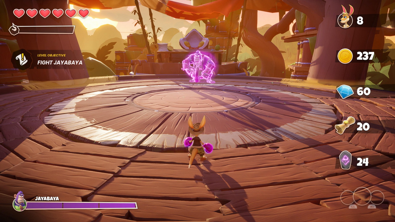 Υπήρχε χώρος να γεμίσει το Kao the Kangaroo με περισσότερα πραγματάκια, αφού η συνολική του διάρκεια δεν ξεπερνάει τις 10 ώρες. Η διάρκεια δεν είναι κακή για το είδος, αφού λίγο πολύ όλα τα campaigns παρόμοιων παιχνιδιών κινούνται σε αυτά τα νούμερα, ενώ πρέπει να’ ναι μακράν το πιο γεμάτο και μεγάλο σε διάρκεια παιχνίδι της σειράς Kao. Απλώς σε συνδυασμό με το ότι δεν υπάρχουν πολλές φρέσκιες ιδέες, την χαμηλή πρόκληση (ειδικά στα boss fights) και το γεγονός ότι τα collectibles και το meta content ολοκληρώνονται μέσα σε αυτό το δεκάωρο με χαρακτηριστική άνεση, μας άφησε στο τέλος του παιχνιδιού με ανάμεικτα συναισθήματα. Ωραία τα κρυμμένα levels και η συλλογή των coins που μας επιτρέπει να αγοράσουμε customization items και να αναβαθμίσουμε τις καρδιές/ lifebar μας, αλλά όλα αυτά ολοκληρώθηκαν σχετικά σύντομα. Βέβαια αυτό το συναίσθημα δεν σημαίνει πάντα αποκλειστικά κάτι αρνητικό, μιας και από τη στιγμή που νιώσαμε ότι θέλαμε να ασχοληθούμε περισσότερο με τον Kao, μάλλον κάτι καλό είχαν κάνει οι developers. Η αλήθεια είναι ότι το Kao the Kangaroo είναι πανέμορφο, με πλούσια χρώματα και ωραίο HDR. Σίγουρα δεν πρόκειται για next-gen τίτλο, μιας και είναι ξεκάθαρο ότι παρουσιάστηκε ένας τίτλος που αναπτύχθηκε κυρίως για τις προηγούμενες κονσόλες και αυτό το είδαμε και στο PlayStation 5. Αυτό όμως δε σημαίνει ότι δεν απολαύσαμε τους χαρακτήρες και τα περιβάλλοντα στα 60fps, με τους developers να έχουν προσθέσει και κάποια μικρά easter eggs που μας θυμίζουν άλλη εποχή. Παρ’ ότι μας άρεσε ο νέος σχεδιασμός του Kao αρκετά, ομολογούμε ότι το μισό παιχνίδι το ολοκληρώσαμε με το skin του παλιού “ορθόδοξου” Kao το οποίο ξεκλειδώνεται, όπως και τα υπόλοιπα skins, με τη συλλογή των νομισμάτων.