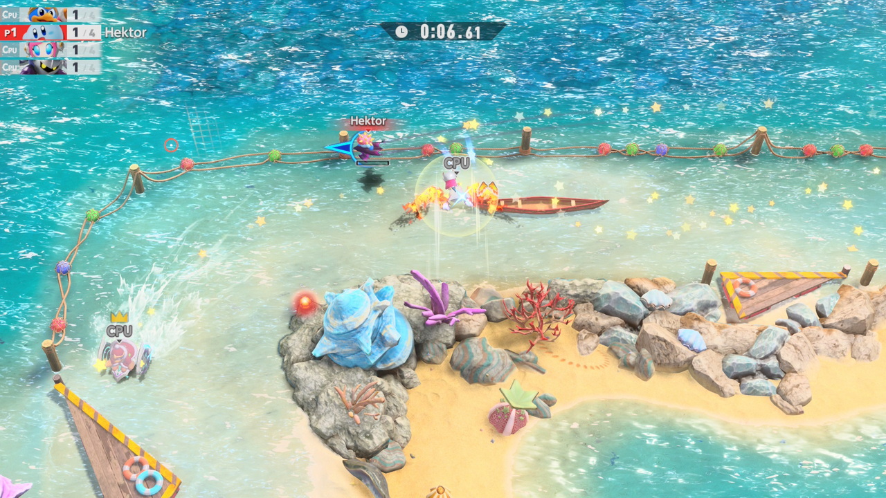 Το μόνο ψεγάδι είναι ότι μιλάμε για 18 πίστες στο Air Ride. Συγκριτικά με το παιχνίδι του 2003 (που είχε μόνο 9), ο διπλασιασμός είναι σημαντικός. Αλλά αν το βάλουμε δίπλα στα Sonic Racing: CrossWorlds και Mario Kart World, το υλικό είναι σχεδόν το μισό — αν εστιάσουμε αποκλειστικά στο kart κομμάτι του Kirby Air Riders. Επίσης, παρ’ ότι η πίστες είναι φτιαγμένες για πολύ λιγότερους παίκτες συγκριτικά με τα υπόλοιπα φετινά kart racers, ενδεχομένως αυτό να ξενίσει λίγο στους βετεράνους του είδους. Αυτή η σύγκριση όμως μπορεί να γίνει μονάχα με τα καθαρά αγωνιστικά modes ταχύτητας, μιας και το υπόλοιπο πακέτο διαφέρει πάρα πολύ με αυτό που προσφέρουν οι ανταγωνιστές του είδους. Γιατί η αλήθεια είναι ότι το Kirby Air Riders προσφέρει παραπάνω πράγματα από ένα καθαρόαιμο kart racing συναίσθημα, άλλωστε επαναλαμβάνουμε ότι μιλάμε για ένα action game με οχήματα . H ποικιλία του τίτλου προσφέρεται μέσα από το καθαρό gameplay και όχι απλά μέσω του περιεχομένου των πιστών. To παιχνίδι κρύβει μέσα του δύο χαρακτήρες: από τη μία τα καθαρά racing modes (2 έως 6 ή 8 παίκτες) και από την άλλη το “Mario Kart meets Smash Bros meets Twisted Metal meets Mario Party” mode με τίτλο City Trial, όπου εκεί συμμετέχουν μέχρι και 16 παίκτες σε μία αρένα με χάος και ξύλο.