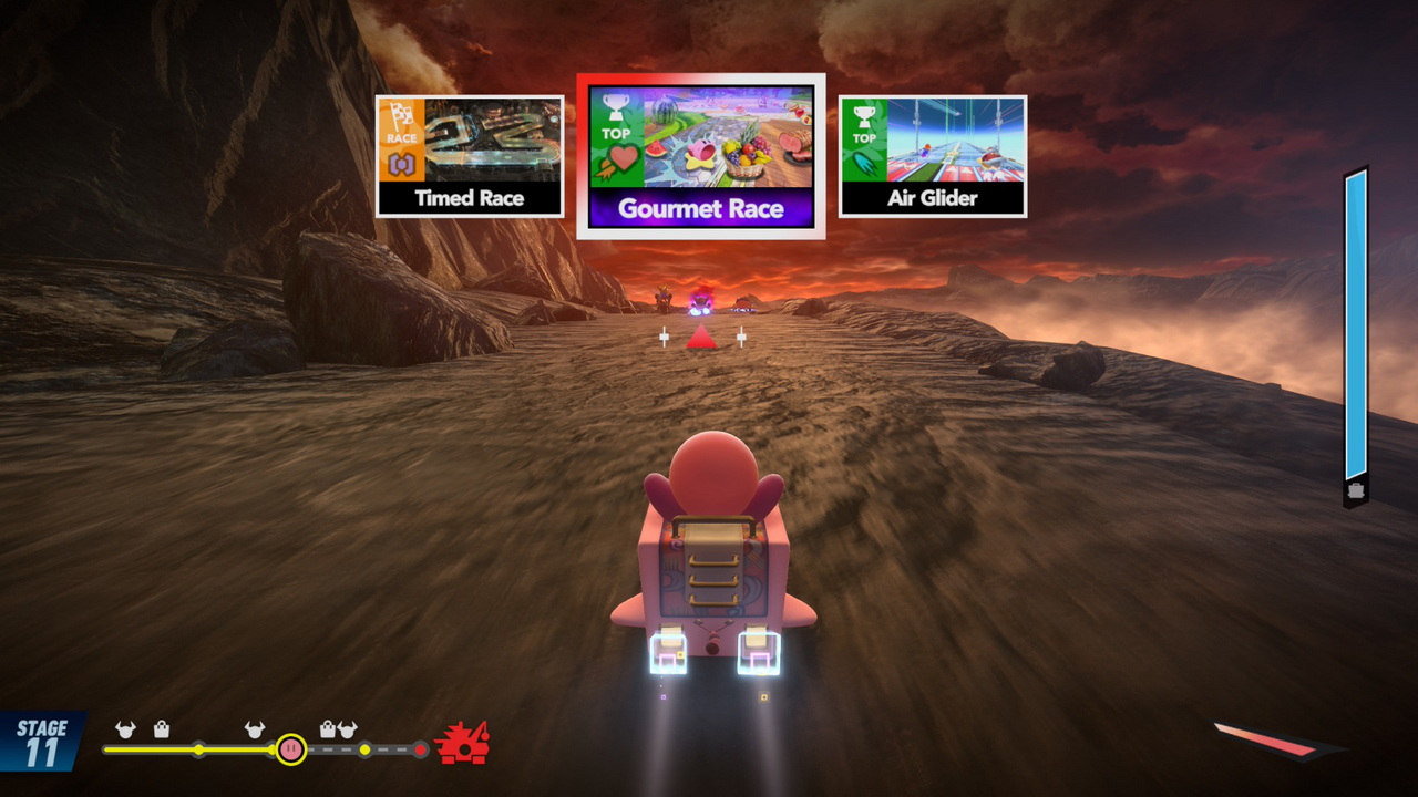 Η αίσθηση θυμίζει Super Smash Bros, όχι από πλευράς μενού ή ηχητικού ντυσίματος, αλλά ως προς το γενικότερο “όμορφο χάος” που επικρατεί. Ο Sakurai προσπάθησε να εμπλουτίσει το concept του Kirby Air Rider με σημαντικά στοιχεία — και το κατάφερε — αλλά εξαιτίας του learning curve που απαιτείται, εμείς προσωπικά δεν θα το βάζαμε σαν βασική εισαγωγή ενός global test event. Το City Trial θέλει 7-8 runs μέχρι να “κάτσει” στο κεφάλι του χρήστη, ειδικά άμα δεν είχε ποτέ επαφή με το πρωταρχικό υλικό. Για να μπορέσει κάποιος να εκτιμήσει ομαλά και σε μεγαλύτερο βαθμό το όμορφο χάος του εν λόγω gaming mode, καλό είναι να ξεκινήσει με το πατροπαράδοτο Air Ride. To Air Ride είναι ένα κλασικό Kart Racing mode, το οποίο θα λέγαμε ότι είναι και το μοναδικό σημείο όπου αξίζει να συγκριθεί με το Mario Kart World. Ο παίκτης έρχεται αντιμέτωπος με άλλους πέντε παίκτες, σε πανέμορφες και με πλούσια backgrounds πίστες. Στροφές, τίναγμα με hyper jumps και εχθροί που μπορούμε να τους καταπιούμε και είτε να τους εκσφενδονίσουμε σε αντιπάλους, είτε να αντιγράψουμε τη δύναμή τους και να την χρησιμοποιήσουμε ως όπλο. Ουσιαστικά πρόκειται για το γνωστό copycat ability των παιχνιδιών Kirby. Σημαντικό στοιχείο είναι και το νέο Special Attack move: αφού ολοκληρωθεί η φόρτισή του ανάλογα με το damage που προκαλούμε στους υπόλοιπους, ο εκάστοτε χαρακτήρας μπορεί να εξαπολύσει ένα ultimate move που διαφέρει από χαρακτήρα σε χαρακτήρα.