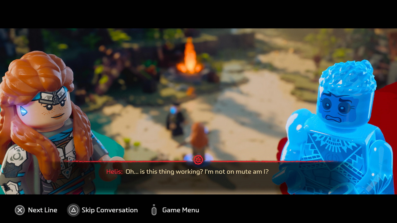 Το χιούμορ των LEGO, είναι προφανές από την αρχή, με κάθε συζήτηση να αποτελεί μια εξαιρετικά επιτυχημένη παρωδία του franchise. Η Guerilla Games εντωμεταξύ, φρόντισε να τοποθετήσει τους ίδιους voice actors, στους ίδιους ρόλους, πλην του Sylens, αφού δυστυχώς ο αγαπητός ηθοποιός που υποδυόταν τον χαρακτήρα, έφυγε από την ζωή. Οφείλουμε να πούμε πως είναι ιδιαίτερα διασκεδαστικό να ακούμε τις γνώριμες στα αυτιά μας φωνές, να συζητούν σε πολύ πιο “καρτουνίστικο” ύφος, σενάρια και υποθέσεις που δεν επρόκειτο να συμβούν ποτέ σε παιχνίδι Horizon. Χαρακτηριστικό παράδειγμα, η φωνή του Rost, (ο οποίος είναι και Narrator βεβαίως βεβαίως) να μας λέει πως αφού η ανθρωπότητα καταστράφηκε και τα social media δεν υπάρχουν πλέον, ο κόσμος ξαναχτίστηκε με τουβλάκια LEGO.