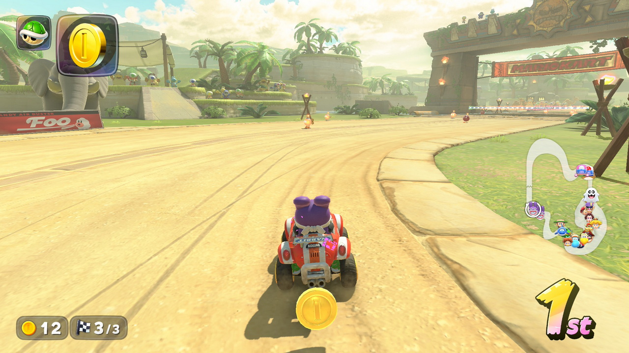 Το Mario Kart World, έχει αρκετές προσθήκες στην φόρμουλα, όσες χρειαζόταν για να χαρακτηριστεί sequel. Μια εξ αυτών όμως, είναι η μεγάλη και παίζει πρωταγωνιστικό ρόλο στον τίτλο, όχι όμως με τον τρόπο που φαντάζεστε. Αυτή είναι η προσθήκη του ανοικτού κόσμου. Ολόκληρο το Mario Kart World, είναι ένα τεράστιο νησί, με τις 30 διαφορετικές πίστες του να βρίσκονται πάνω σε αυτό και ένα μεγάλο κομμάτι κόσμου για να εξερευνήσουν οι παίκτες. Από αυτές τις 30 πίστες, οι 16 είναι ολοκαίνουργιες, ενώ οι 14 είναι επιστροφές από προηγούμενα παιχνίδια του franchise. Έχουμε συνηθίσει, όταν ακούμε ή διαβάζουμε την έκφραση “ανοιχτός κόσμος”, το μυαλό μας να πηγαίνει σε εξερεύνηση, δραστηριότητες, side quests κ.ο.κ. Το Mario Kart World, περιέχει ελεύθερη περιήγηση στον κόσμο, κάποιες επαναλαμβανόμενες δραστηριότητες και κανένα side quest. Τα μόνα πράγματα που μπορείτε να κάνετε στον ανοιχτό κόσμο, είναι να κόβετε βόλτες με το Kart σας, βρίσκοντας “P” switches τα οποία τα πατάτε για να πραγματοποιήσετε ένα challenge, το οποίο κάποιες φορές απαιτεί σημαντική προσπάθεια - αλλά τις περισσότερες όχι. Στα “P” switches πρέπει να οδηγήσετε το Kart σας με όποιον χαρακτήρα θέλετε, μέσα από μπλε κυκλάκια, και να φτάσετε στην γραμμή του τερματισμού πριν τελειώσει ο χρόνος.