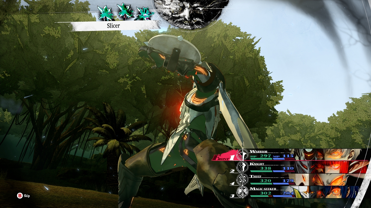 Τα επιπλέον μέλη ανοίγουν κι έναν ακόμη διάδρομο στην τακτική – το Skip Turn. Κάθε χαρακτήρας μπορεί να προσπεράσει τον γύρο του, καταναλώνοντας μισό κρύσταλλο. Αυτό σημαίνει πως ούτε κάνει ενέργεια, ούτε Guard, ούτε τίποτα κι απλώς χαρίζει τον γύρο του στον επόμενο, ο οποίος ίσως έχει μια κίνηση που χτυπάει σε αδυναμία του εχθρού ή κάτι άλλο κατά νου. Η ροή της μάχης μπορεί να γίνει αρκετά ρευστή, ξεφεύγοντας από την αυστηρότητα των γύρων. Κι ένας από τους πιο χρήσιμους λόγους να κάνει κάποιος Skip Turn, είναι τα Synthesis moves. Κάθε Archetype έχει μερικά Synthesis moves, τα οποία απαιτούν συνέργεια δύο ατόμων και έτσι, καταναλώνουν δύο κρυστάλλους. Ωστόσο, είναι εξαιρετικά ισχυρά – buffs για όλη την ομάδα, επιθέσεις που συνδυάζουν δύο τύπους (π.χ. Physical Slash και Fire) και άλλα. Καταναλώνουν πολύ MP, πέραν των κρυστάλλων, οπότε δεν είναι αποδοτικό να χρησιμοποιούνται συνεχώς παρά για μεγάλες ανάγκες ή ευκαιρίες. Γιατί να ξοδέψει ενέργεια ένας χαρακτήρας που δεν «βαράει» σε αδυναμία κι ούτε μπορεί να δώσει π.χ. buffs στην ομάδα; Μπορεί να κάνει Guard, όμως χαρίζοντας τον γύρο του αφήνει μισό κρύσταλλο ανεκμετάλλευτο, τον οποίο μπορεί να αξιοποιήσει ο επόμενος για ένα Synthesis.