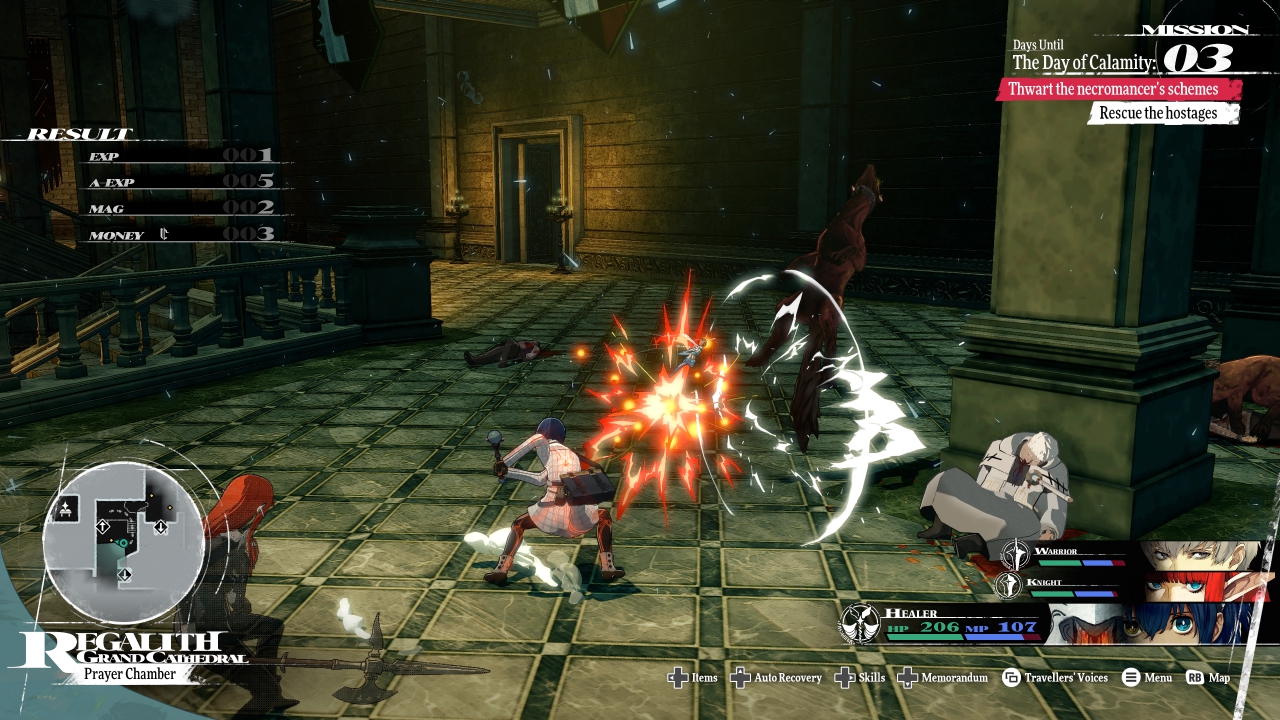 Όσο ξεκλειδώνονται Archetypes, τόσο περισσότερο φαίνεται η αξία των Synthesis, επηρεάζοντας ακόμη και τη δομή του party. Εφόσον ο καθένας χρησιμοποιεί μόνο ένα Archetype τη φορά, και τα Synthesis λειτουργούν συνδυάζοντας συγκεκριμένα Archetypes, ο παίκτης πρέπει να σκεφτεί πώς θα έχει ποικιλία σε επιθέσεις και support moves, πώς θα αξιοποιήσει τον καθένα στον ρόλο του και πώς θα έχει στη διάθεσή του πολλαπλά Synthesis για κάθε περίσταση. Τα Archetypes είναι μπόλικα, κοντά δύο ντουζίνες, οπότε υπάρχει αρκετό υλικό για πειραματισμό και παρότι ο καθένας ξεκινάει με ένα συγκεκριμένο, μπορεί να διδαχτεί οποιοδήποτε άλλο. Και πρέπει να το κάνει, καθώς κάθε Archetype διαθέτει αρχικά ένα slot για Skill Inheritance, δηλαδή να κληρονομήσει ένα οποιοδήποτε skill (ακόμη και passive) από άλλο Archetype. Έτσι, οι «παραδοσιακά» πιο μονοδιάστατοι ρόλοι μπορούν να αποκτήσουν νέο βάθος. Γιατί να μείνει στον απλό ρόλο του Knight η αγαπητή Hulkenberg, για παράδειγμα, ενώ μπορεί να εξοπλιστεί και με long-range skills του Gunner; Μπορεί να πάει στην πίσω γραμμή της μάχης, που αλλάζει με ένα πλήκτρο και δεν καταναλώνει ενέργεια, και να τραβάει την προσοχή των εχθρών. Όσο βρίσκεται στην πίσω γραμμή, δέχεται λιγότερη και κάνει λιγότερη ζημιά. Βάζοντας στην εξίσωση και τα long-range skills, όμως, μπορεί να επιτίθεται από την πίσω γραμμή χωρίς ποινή στη ζημιά που κάνει, αποκτώντας διπλό ρόλο ranged/tank. Οι συνδυασμοί είναι πάρα πολλοί και ο παίκτης επιβραβεύεται για τον πειραματισμό του, αφού οι εχθροί είναι κάθε άλλο παρά σάκοι του μποξ. Με μια λάθος κίνηση, όπως ένα miss, μπορούν να τιμωρήσουν εύκολα όλη την ομάδα, φορτώνοντάς τη με debuffs και status ailments, χώρια την ζημιά. Άρα κάποιος ρόλος που εστιάζει στο Physical Damage και είναι κακός στη μαγεία, γιατί να μην εξοπλιστεί με ξόρκι Patra που αφαιρεί τα ailments; Εξάλλου, δεν χρειάζεται υψηλό Magic stat για να λειτουργήσει. Κι όσο ο παίκτης κάνει επιθέσεις προκειμένου να ανακαλύψει το αδύναμο σημείο του εχθρού, πρέπει να έχει ένα πλάνο άμυνας, οπότε όλα χρειάζονται. Αν η μάχη «στραβώσει», μάλιστα, με ένα πλήκτρο ο παίκτης ξεκινά από την αρχή γλιτώνοντας χρόνο και εκνευρισμό. Η ευελιξία που προσφέρει ένα Archetype υψηλού rank είναι αναγκαία, καθώς μετριάζει ένα από τα όχι τόσο ευχάριστα σημεία του παιχνιδιού. Καθώς όλοι έχουν μονάχα ένα Archetype, η πλειοψηφία των skills τους (αλλά και των weaknesses) είναι σταθερή, οπότε ο παίκτης εύκολα μπορεί να βρεθεί παγιδευμένος σε μια μάχη με «λάθος» Archetypes και να πρέπει να ανασυνταχθεί ώστε να κάνει αλλαγές. Δεν είναι κακό, ίσα-ίσα αποτελεί συχνό χαρακτηριστικό των RPGs αφού τα Archetypes αντιπροσωπεύουν ρόλους, απλώς τις πρώτες ώρες είναι εύκολο να βρεθεί κάποιος σε μάχη όπου η νίκη φαντάζει αδύνατη. Όσο αποκτώνται περισσότερα Archetypes και Skill Inheritance slots, το βουνό ξεπερνιέται ευκολότερα.