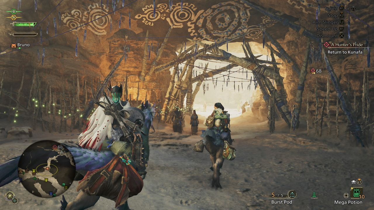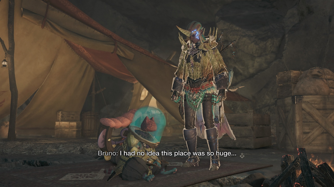 Όσο για το co-op που προαναφέραμε, για πρώτη φορά δίνεται η δυνατότητα παροχής βοήθειας από NPCs. Σύμφωνα με την Capcom, το εν λόγω χαρακτηριστικό προστέθηκε για όσους θέλουν να νιώσουν το αίσθημα του co-op play, δίχως να χρειάζεται να παίζουν online, ή να μιλάνε με τον συμπαίκτη τους. Έτσι, ακόμα και σε περίπτωση που ο τίτλος παίζεται offline, η δυνατότητα εκτόξευσης SOS flare εξακολουθεί να είναι διαθέσιμη, καλώντας NPCs για να πολεμήσουν κάποιο τέρας στο πλευρό μας. Το συγκεκριμένο χαρακτηριστικό είναι μια από τις ευχάριστες εκπλήξεις του Wilds, αφού οι χαρακτήρες που εμφανίζονται για να μας δώσουν μια χείρα βοηθείας είναι όντως χρήσιμοι, αλλά και ιδιαίτερα ομιλητικοί, δίνοντας έτσι την αίσθηση πως δεν είμαστε ποτέ μόνοι στο κυνήγι. Ειδικά σε περιπτώσεις που χρειάζεται να κάνουμε heal, να ακονίσουμε το όπλο μας ή… να μαγειρέψουμε (μια και μπορούμε εν μέσω μάχης για boost σε διάφορα stats), είναι ικανοί να τραβήξουν την προσοχή των τεράτων, δίνοντάς μας χώρο να ανασυνταχτούμε. Από την άλλη, όταν αντιμετωπίζουμε κάποιο τέρας solo, μπορούμε να εκμεταλλευτούμε το Seikret - ο σύντροφος δράκος μας που χρησιμοποιούμε για mount - ώστε να απομακρυνθούμε γρήγορα και να αποφύγουμε χτυπήματα, έως ότου να είμαστε έτοιμοι να επιστρέψουμε στη μάχη. Εκτός του Seikret, αναπόσπαστο κομμάτι της ομάδας μας είναι και το Palico - ένα γατοειδές τερατάκι που μας συντροφεύει ακατάπαυστα - το οποίο συνεισφέρει στην αποδυνάμωση των τεράτων, αλλά και μας προσφέρει heals σε κομβικά σημεία των μαχών.