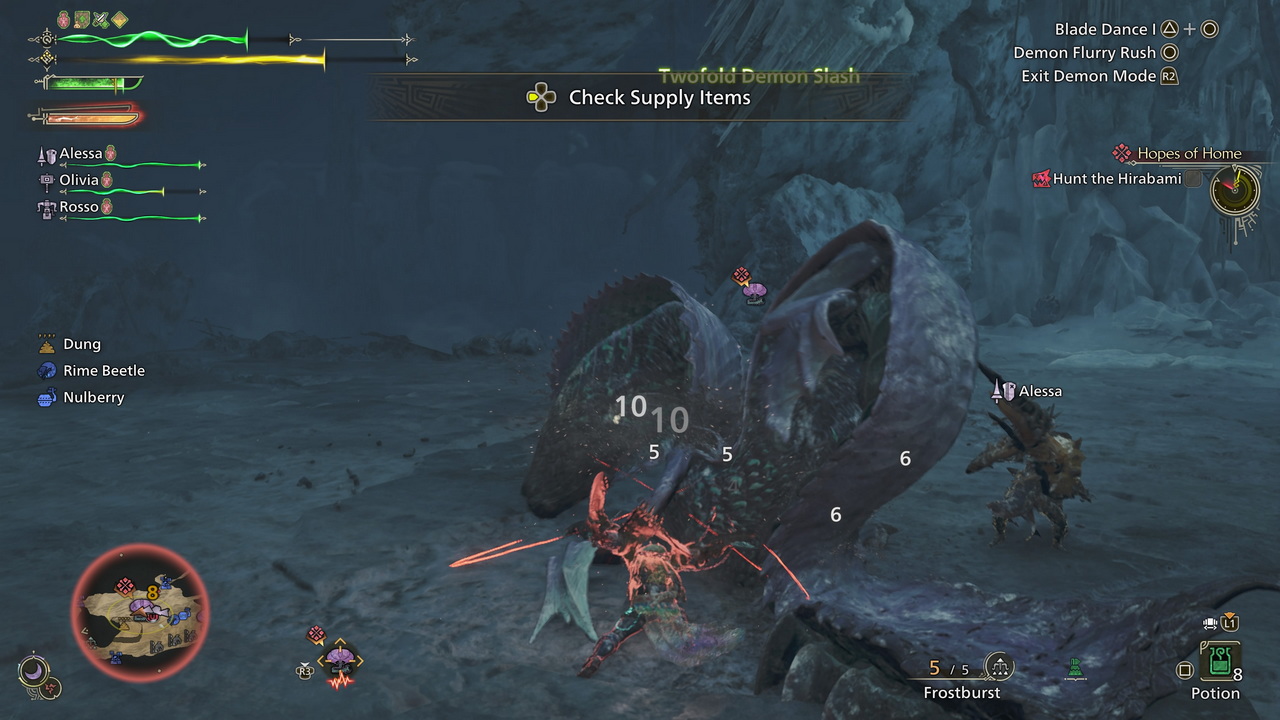 Ως βασική ιδέα, σίγουρα είναι. Στην πράξη όμως τα πράγματα είναι πολύ διαφορετικά. Στο Monster Hunter Wilds υπάρχουν πολλές περιοχές με περιβάλλοντα που διαφέρουν έντονα μεταξύ τους. Για παράδειγμα, υπάρχουν ερημικοί αμμόλοφοι, πυκνά δάση με γιγαντιαία δέντρα και σπηλιές που είτε θα έχουν ακραία χαμηλή θερμοκρασία, είτε δραματικά υψηλή. Σε κάθε μια απ’ αυτές τις περιοχές, εντοπίζονται ξεχωριστά τέρατα που προσαρμόζονται και ευδοκιμούν στο εκάστοτε κλίμα. Ακριβώς γι’ αυτόν τον λόγο, θα χρειαστεί να επιλέξουμε με πολλή προσοχή τον εξοπλισμό που θα έχουμε μαζί μας στο κυνήγι κάθε ενός από αυτά τα τέρατα. Κι αυτό περιλαμβάνει περισσότερα πράγματα από την ενδυμασία του κυνηγού μας: τα όπλα μας, όποιου τύπου και αν είναι (από συνολικά 14), μπορούν να εφαρμόσουν κομμάτια από διαφορετικά τέρατα, αλλάζοντας σύσταση κατά βούληση, ενώ τα αντικείμενα που κουβαλάμε ανά αποστολή, ορίζουν τις πιθανότητες να τη φέρουμε εις πέρας. Το παιχνίδι ξεκαθαρίζει το πόσο σημαντική είναι η κατάλληλη προετοιμασία για κάθε αποστολή, δίνοντάς μας χώρο να ελέγξουμε τι διαθέτουμε, τι αναβαθμίσεις μπορούμε να κάνουμε και τι αντικείμενα – προμήθειες χρειάζεται να αγοράσουμε. Υπάρχουν μάλιστα προτάσεις για τις δημιουργίες και τις αναβαθμίσεις όπλων και ενδυμασιών, πάντα με βάση το σημείο που βρισκόμαστε στην ιστορία. Αυτό κάνει τα πράγματα λίγο πιο απλά, όμως όσοι θέλουν να έχουν τον απόλυτο έλεγχο του χαρακτήρα τους είναι σχεδόν βέβαιο πως θα το αποφύγουν. Κι αυτό γιατί οι προτάσεις αυτές δεν παρουσιάζουν πάντα το βέλτιστο setup, αλλά ένα ενδεικτικό, για όσους ενδεχομένως χάνονται με τις πολλές λεπτομέρειες.