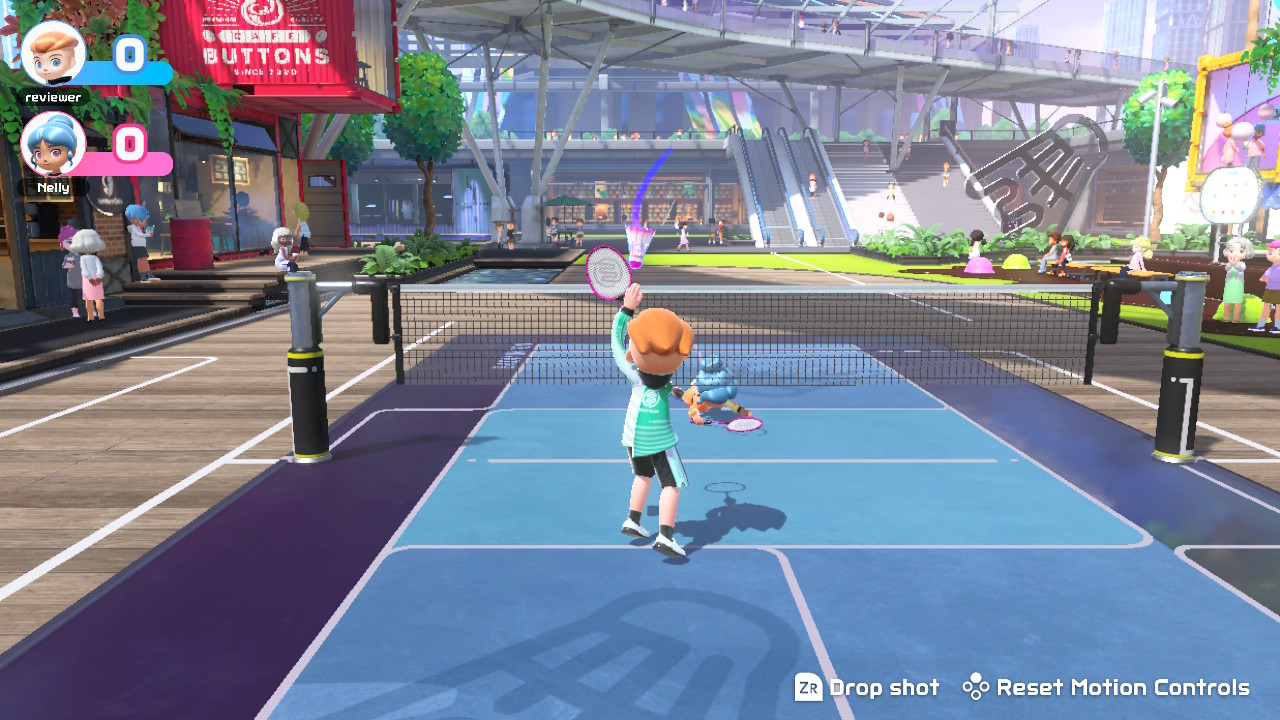 Πριν συμπληρώσουμε τις απαραίτητες πληροφορίες, είχαμε την ευκαιρία να ασχοληθούμε για αρκετές ώρες με το online mode. Τα προβλήματα συνδεσιμότητας που συναντήσαμε ήταν ελάχιστα και αυτά όταν η κονσόλα βρισκόταν εκτός dock. Με το σύστημα τοποθετημένο στη βάση του, χρησιμοποιώντας καλώδιο LAN, η εμπειρία ήταν ομαλή και άκρως απολαυστική. Το matchmaking είναι γρήγορο, γεγονός που οφείλεται στο ότι σε ορισμένες περιπτώσεις, κάποιοι από τους συμμετέχοντες είναι bots, ελεγχόμενα από τη CPU. Θα καταλάβετε το αν θα βρεθείτε σε μια τέτοια κατάσταση από τον τρόπο με τον οποίο συμπεριφέρονται οι παίκτες ή οι αντίπαλοί σας. Αψεγάδιαστες κινήσεις, αλλά όχι αποτελεσματικές, οπότε η κατάκτηση της νίκης θα είναι απλή υπόθεση. Ασφαλώς για να παίξετε, θα πρέπει να έχετε ενεργή συνδρομή στην υπηρεσία Nintendo Switch Online. Κάθε συμμετοχή σε αγώνα συνοδεύεται από έναν αριθμό πόντων, που πολλαπλασιάζονται ανάλογα με τις επιδόσεις των παικτών. Φτάνοντας στους 100, ξεκλειδώνει ένα τυχαίο αντικείμενο, για την διαμόρφωση της εμφάνισης του χαρακτήρα σας. Υπάρχουν αντικείμενα που σχετίζονται με την ένδυση, όπως t-shirts, γυαλιά, αλλά και μπάλες, ρακέτες και άλλα αξεσουάρ. Οι συλλογές αντικειμένων θα ανανεώνονται ανά τακτά χρονικά διαστήματα, δίνοντας ένα ακόμα κίνητρο να συνεχίσετε να ασχολείστε με το online mode.