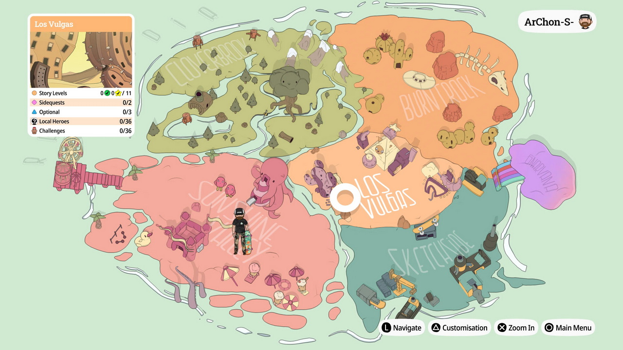 Ταυτόχρονα, το παιχνίδι σάς επιτρέπει να προχωρήσετε στα πρώτα levels με αρκετά εύκολα objectives, τα οποία θα σας καλωσορίσουν στον κόσμο της Radlandia. Οι πίστες έχουν διάφορα main και side objectives, για να τις ολοκληρώσετε όπως επιθυμείτε εσείς. Αν ο στόχος σας είναι να ολοκληρώσετε στο 100% το OlliOlli World, τότε να γνωρίζετε πως θα δυσκολευτείτε αρκετά. Για τους fans της σειράς, συγκριτικά με τα προηγούμενα δύο, το OlliOlli World είναι πιο εύκολο να ολοκληρωθεί αλλά σημαντικά πιο δύσκολο να πραγματοποιηθούν όλοι οι στόχοι. Η Roll7 έχει επιτύχει με αυτό τον τρόπο να ικανοποιήσει παίκτες που θέλουν να βιώσουν μια πιο χαλαρωτική εμπειρία, αλλά και παίκτες που θέλουν να ζήσουν τον απόλυτο πανικό δυσκολίας για να περάσουν μέσα απο τα εξαιρετικά σχεδιασμένα levels εκτελώντας όλα τα objectives. Εδώ οφείλουμε να πούμε πως ένα μειονέκτημα του τίτλου είναι το γεγονός πως σε προχωρημένα επίπεδα η κίνηση του skater σας είναι πάρα πολύ γρήγορη, με πολλά χρώματα στην οθόνη. Ταυτόχρονα, στα 60 καρέ ανά δευτερόλεπτο, η δράση ενδεχομένως να σας προκαλέσει ζάλη, ειδικά αν παίζετε σε οθόνη πολλών ιντσών ή από κοντινή απόσταση. Η ομάδα ανάπτυξης φροντίζει παρόλα αυτά να σας προειδοποιήσει για την κατάσταση, καθώς στο μήνυμα καλωσορίσματος του παιχνιδιού δηλώνει πως το OlliOlli World είναι ένα πολύ γρήγορο παιχνίδι. Σας προτείνεται να το παίξετε από απόσταση που δεν θα κουράσει τα μάτια σας ή σε μια μικρότερη οθόνη.