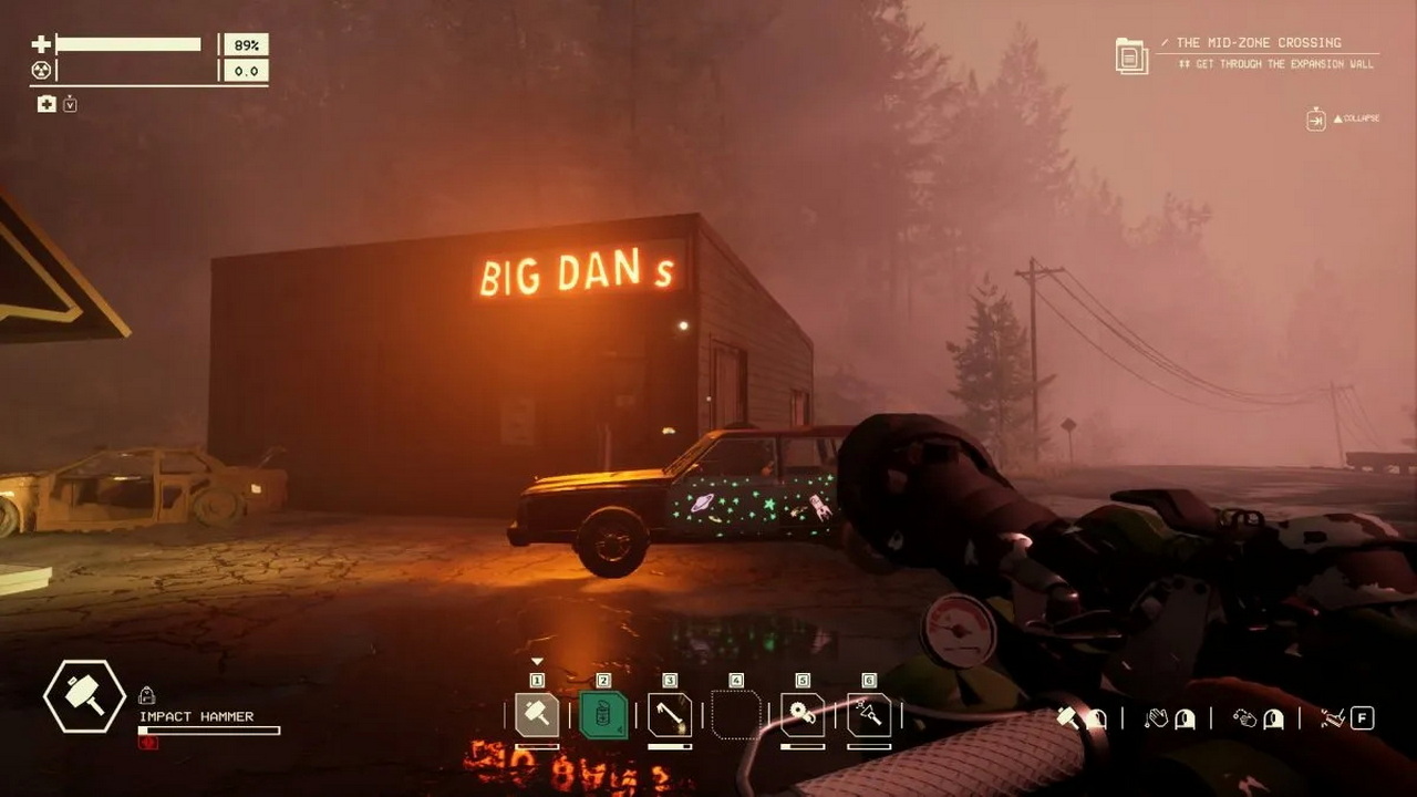 Τον ήρωά μας θα τον τραβήξει μια δύνη και θα τον μεταφέρει σε ένα άγνωστο κομμάτι της περιοχής, όπου και θα βρει τον πιο απίθανο σύμμαχο και προστάτη, ένα παλιό station wagon. Με αυτό θα μπορέσει να βρει μια μικρή «φούσκα» σταθερότητας, στην οποία για καλή του τύχη βρίσκεται ένα συνεργείο/επιστημονικό εργαστήριο, το οποίο και η ιδιοκτήτρια του θα τον/την αφήσει να χρησιμοποιήσει. Με το συνεργείο σαν ορμητήριο, ο πρωταγωνιστής θα αρχίσει να εξερευνά την περιοχή με διασταυρώσεις σαν «άγκυρες» και θα προσπαθήσει να βρει έναν τρόπο να ξεφύγει από αυτό το εφιαλτικό περιβάλλον. Κάθε φορά που ο παίκτης επισκέπτεται μια περιοχή, πέρα από το looting και τα όποια objectives, επιστρέφει στο γκαράζ και μετά μπορεί να συνεχίσει στο επόμενο κομμάτι της διαδρομής κ.ο.κ. Έτσι ο τίτλος αποκτά έναν roguelike χαρακτήρα, αφού η κάθε επίσκεψη σε μια τοποθεσία γίνεται το εκάστοτε “run” και κάθε φορά οι παίκτες αποκτούν κάτι που θα τους επιτρέψει (αν όλα πάνε καλά) να προχωρήσουν λίγο παραπάνω.