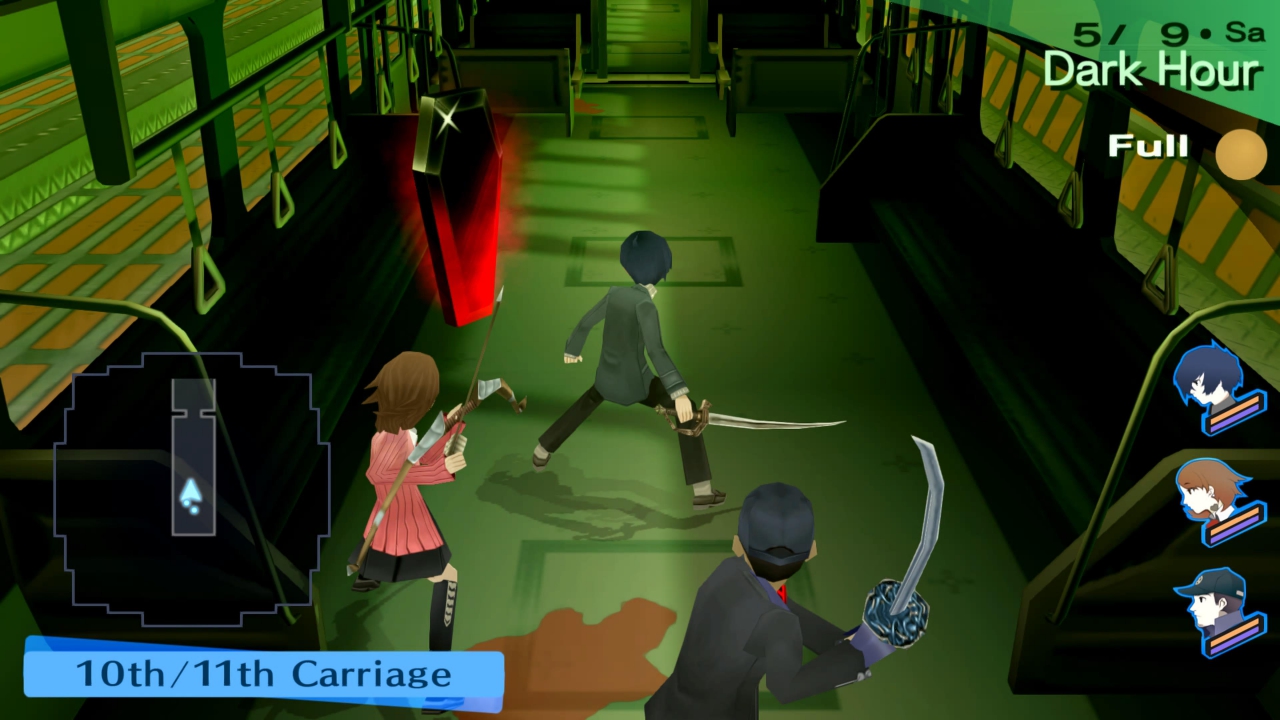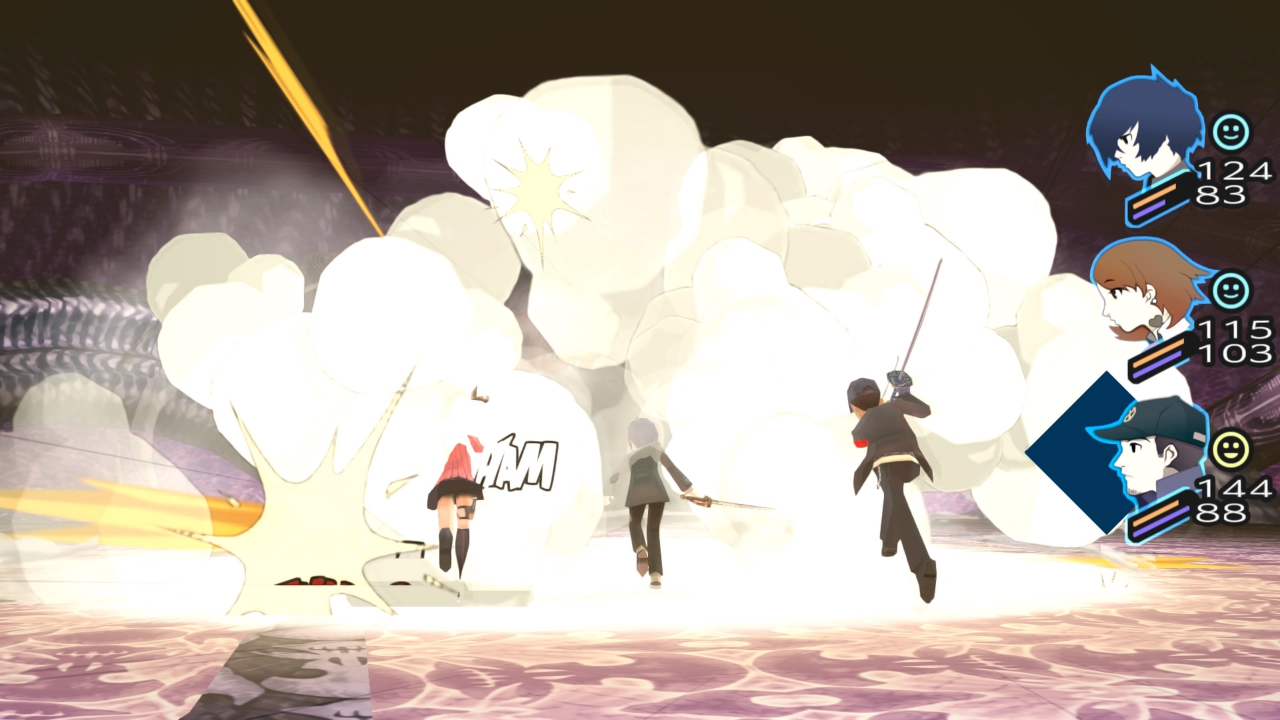 Κι όσο για τη μάχη, είναι στα καλύτερά της – με διαφορά η καλύτερη εκδοχή ανάμεσα στις τρεις εκδόσεις. Αρχικά, επιτρέπει τον έλεγχο κάθε μέλους του party ξεχωριστά ενώ προσφέρει και την δυνατότητα να λειτουργεί αυτόνομα βάσει ορισμένων οδηγιών. Στις άλλες εκδόσεις, δεν ίσχυε κάτι τέτοιο, οπότε εδώ ελαχιστοποιείται το περιθώριο λάθους αφού ο παίκτης μπορεί να έχει τον πλήρη έλεγχο κάθε κίνησης. Χρησιμοποιείται το σύστημα “1 more” που συναντάται και σε επόμενα Persona, με το οποίο ο παίκτης κερδίζει έναν γύρο αν επιτεθεί στην αδυναμία ενός εχθρού. Αν όλοι οι εχθροί είναι πεσμένοι μετά από τέτοιες επιθέσεις, τότε μπορεί να εκτελεστεί ένα “All-Out Attack” από όλο το party μαζί, κάνοντας τρομερή ζημιά. Με τους ίδιους βασικούς κανόνες «παίζουν» και οι αντίπαλοι, οπότε όταν ένας απλός εχθρός καταφέρει να γυρίσει τα πάντα ανάποδα και η όποια στρατηγική καταλήγει στον κάλαθο των αχρήστων, η αδρεναλίνη πάει στα ύψη κι ο παίκτης πρέπει να σκεφτεί με προσοχή πώς θα ξανακερδίσει το επάνω χέρι. Πρόκειται για ένα άψογο, ισορροπημένο, γρήγορο και διασκεδαστικό «καθαρόαιμο» turn-based RPG, όσον αφορά στο συγκεκριμένο κομμάτι, και το σύστημα μάχης εύκολα κατατάσσεται στα μεγάλα υπέρ του τίτλου. Ειδικά τα bosses αποτελούν σημαντικό κομμάτι της εμπειρίας, δρώντας περισσότερο σαν γρίφοι παρά σαν αγώνες αντοχής. Στον τομέα της μουσικής, το Persona 3 έρχεται με ένα μίγμα hip-hop/rap και pop. Έχει μερικά εξαιρετικά κομμάτια, όπως το “Mass Destruction” που παίζει στις μάχες, το οποίο ίσως εκνευρίζει λίγο τις πρώτες φορές όμως ύστερα από λίγο «κολλάει». Αντίστοιχα, το “Burn My Dread”, που θεωρείται το αντιπροσωπευτικό τραγούδι του παιχνιδιού, είναι ήσυχο και ρυθμικό με μια ένταση στο ρεφραίν και μετά ηρεμεί ξανά. Δεδομένων των σκαμπανεβασμάτων που περνάει ο πρωταγωνιστής κι όλοι γύρω του, μάλλον ταιριάζει άψογα. Αλλά, υπάρχει ένα αλλά: η ισορροπία του ήχου είναι άνιση. Ξαφνικά βυθίσματα συνοδεύονται από ξαφνικά ανεβάσματα, σε διαλόγους και μουσική. Δεν φτάνει σε ακραία επίπεδα, για να «τρομάξει» με τις απότομες αλλαγές, αλλά σίγουρα εκνευρίζει. Τουλάχιστον, η Atlus κυκλοφόρησε ένα patch που διορθώνει τα θέματα.