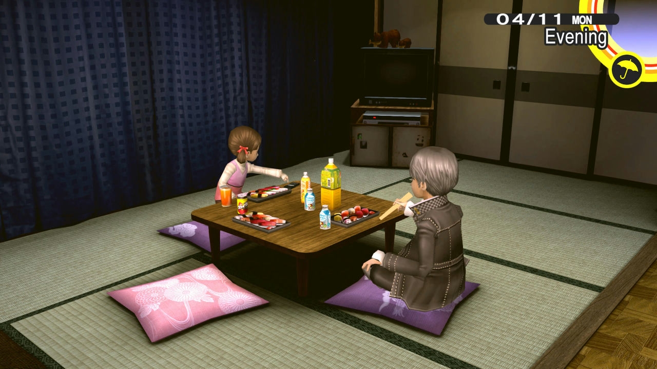 Όλα αυτά ακούγονται πολλά και πράγματι, σίγουρα δεν είναι λίγα. Είναι πάρα πολλά και δη στο πρώτο playthrough, όμως προτείνεται ένας παίκτης να τα ζήσει δίχως βοήθεια και καθοδήγηση την πρώτη φορά κι ύστερα, αν θέλει να πει πως τα έκανε όλα, ας ακολουθήσει οδηγούς από το δεύτερο playthrough κι ύστερα. Έτσι, θα μπορεί να δει όλες τις δραστηριότητες, να γνωρίσει όλους τους χαρακτήρες, να πειραματιστεί με νέα Personas και κυρίως, να δει ένα ακόμη από τα τέσσερα τέλη. Ένα τυπικό playthrough του Persona 4 Golden διαρκεί περίπου 70 ώρες, χωρίς να καλύπτονται όλες οι πτυχές του παιχνιδιού. Για τον οπτικό τομέα, μπορούν να ειπωθούν πολλά. Το βασικό είναι πως μιλάμε για ένα στιλάτο παιχνίδι, όπου συνδυάζεται μουντή ατμόσφαιρα με ζωηρά χρώματα σε σκηνές που παίζονται η μία μετά την άλλη δίχως να ξενίζει κάποιο στοιχείο. Έπειτα, η μικρή πόλη Inaba είναι γραφική, παραδοσιακή και πανέμορφη, ένα ανέγγιχτο ιαπωνικό προάστειο που αντιστέκεται στις συνήθειες της μεγαλούπολης όσο μπορεί. Τα μοντέλα των χαρακτήρων έχουν ρεαλιστικές διαστάσεις και χαρακτηριστικά όταν ο παίκτης εξερευνά τον τρισδιάστατο κόσμο, όπως και μέσα στις μάχες με ακόμη μεγαλύτερη λεπτομέρεια. Προερχόμενο από το PS Vita και το PS2, το παιχνίδι δείχνει την ηλικία του όμως σε καμία περίπτωση τα γραφικά και ο σχεδιασμός δεν γίνονται εμπόδιο για την διασκέδαση. «Γέρασε» πολύ καλά και δεν του λείπει κάτι, συνδυάζοντας μενού και fast travel με εξερεύνηση επί ποδός και διάφορες περιοχές. Δεδομένου του πόσο χρόνο χρειάζεται για να τερματιστεί, η ισορροπία είναι καλή και σέβεται τον χρόνο του παίκτη. Δεν πρόκειται για 70 ώρες μπρος-πίσω με τα πόδια, για να επεκταθεί τεχνητά ο χρόνος, αλλά για 70 ώρες «ζουμί».