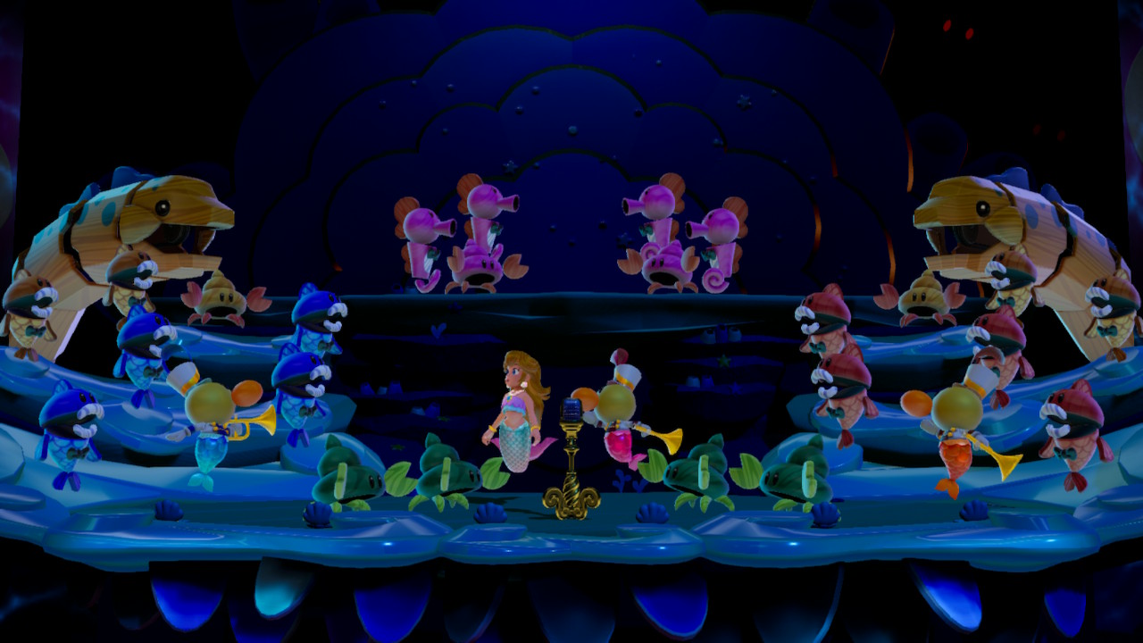 Η καρδιά του παιχνιδιού και η απόδειξη ότι έχει αναπτυχθεί από μια ομάδα που κατακλύζεται από δημιουργικότητα, βρίσκεται στις μεταμορφώσεις της πρωταγωνίστριας. Στις αίθουσες του Sparkle Theater θα κληθεί να δώσει μια σειρά από παραστάσεις, κάθε φορά με διαφορετική προσωπικότητα. Οι Swordfighter Peach, Detective Peach, Patissier Peach, Kung Fu Peach, Ninja Peach, Cowgirl Peach, Figure Skater Peach, Dashing Thief Peach, Mermaid Peach και Mighty Peach, υπόσχονται ένα μοναδικό υπερθέαμα, με τις ιδιαίτερες δυνάμεις που διαθέτουν. Για κάθε μεταμόρφωση υπάρχουν διαφορετικοί μηχανισμοί για του gameplay. Η πριγκίπισσα θα κληθεί να εξιχνιάσει υποθέσεις κλοπής, να κάνει επίδειξη των ικανοτήτων της στο καλλιτεχνικό πατινάζ, να σαγηνεύσει με το τραγούδι της τα πλάσματα που κατοικούν κάτω από το νερό, θα ταξιδέψει ως την Άγρια Δύση, θα ετοιμάσει γλυκά, θα πετάξει στο διάστημα και πολλά άλλα. Το platforming συνδυάζεται ιδανικά με στοιχεία stealth, action, εξερεύνηση, αφαιρετική σκέψη, τη διακόσμηση και πολλά άλλα. Τα πάντα από λίγο αλλά στην κατάλληλη ποσότητα για να υπάρξει το ιδανικό αποτέλεσμα.