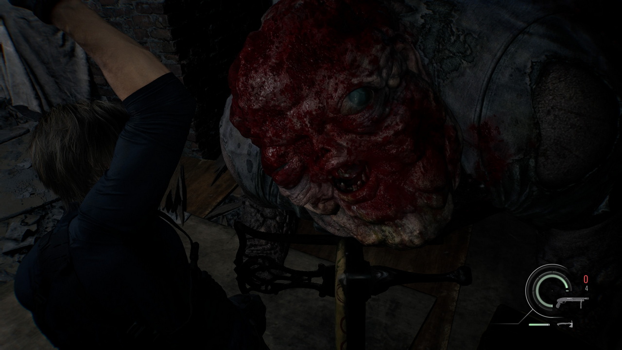 Ο Leon πρωταγωνιστεί στα κομμάτια με την κάμερα σε οπτική τρίτου προσώπου, κάνοντας στροφή προς το action και ανεβάζοντας αισθητά τους ρυθμούς. Σε αντίθεση με την Grace, η οποία διαθέτει μόνο περίστροφα, αλλά και μαχαίρια που βρίσκει σκόρπια στο έδαφος, ο Leon έχει πιο εξελιγμένο οπλοστάσιο και περισσότερες σφαίρες, όπως και τη δυνατότητα να αγοράσει επιπρόσθετα όπλα και να τα αναβαθμίσει με attachments που κάνουν τη χρήση τους καλύτερη και πιο απολαυστική. Είναι σαφέστατα πολύ πιο έμπειρος από την Grace, αντιμετωπίζοντας τις καταστάσεις με μια ελαφριά κυνικότητα κι ένα ψυχρό χιούμορ που ομολογουμένως τον χαρακτηρίζει εδώ και καιρό. Το gameplay με τον Leon αντικαθιστά τις τακτικές stealth της Grace με άφθονο shooting, αν και διατηρεί τα στοιχεία της διαχείρισης πόρων και των γρίφων.