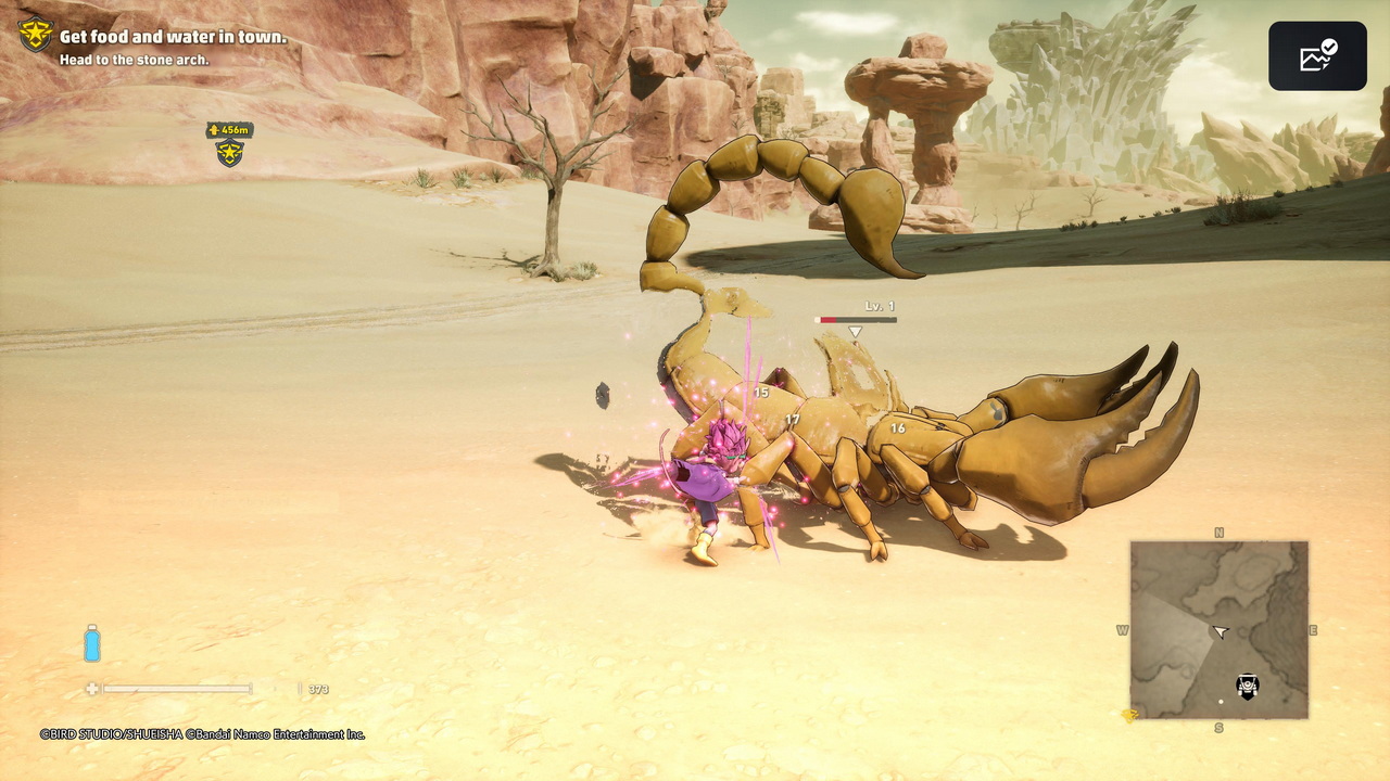Μιας και μιλήσαμε για ανούσιες αποστολές, εκεί εμφανίστηκαν ξεκάθαρα θέματα με οριακά απαρχαιωμένο σχεδιασμό σε κάποια quests και ειδικά στα side quests. Η κατάσταση μας θύμισε αρκετά ένα από τα βασικά προβλήματα που είχε το Dragon Ball Z: Kakarot, που δεν ήταν άλλο από τα basic side quests και τα άπειρα (χαζό) items που μάζευε ο παίκτης. Στο Sand Land έχουμε έναν κόσμο που θυμίζει τις κακές στιγμές της Ubisoft, όχι τόσο σε ποσότητα, αλλά σε ποιότητα. Αποδεχόμαστε μερικά fetch και assassination quests, ανοίγουμε τον χάρτη και αρχίζουμε και μεταφερόμαστε στο εκάστοτε spot για να προχωρήσουμε στο καθιερωμένο map cleaning στο ύφος ελαφρώς ξεπερασμένων open world παιχνιδιών. Ενώ υπάρχει ένα διασκεδαστικό και όμορφο lore στο Sand Land, δυστυχώς καπακώνεται από τον τυπικό και μέτριο σχεδιασμό των αποστολών, οι οποίες σε συνδυασμό με το απλοϊκό σύστημα μάχης δημιουργούν ένα κοκτέιλ προβληματικών συνδυασμών που μπορεί να κουράσει. Ίσως γι’ αυτό αποφάσισαν οι developers να προσθέσουν κάποια platform sections σε 2D σκηνικά αλλά και άκρως stealth σημεία, ώστε να διαφοροποιήσουν λίγο την φόρμουλα του main quest. Κατά κάποιον τρόπο τα καταφέρνουν, αλλά και αυτά ακολουθούν πολύ βασικές τεχνικές που προφανώς δεν μπορούν να σταθούν επάξια απέναντι σε τίτλους που το κάνουν με μεγαλύτερο βάθος και πιο πετυχημένα. Παρ’ όλα αυτά, είναι καλοδεχούμενα, γιατί προσφέρονται στον χρήστη στις σωστές δόσεις, όσο χρειάζεται δηλαδή για να φρεσκαριστεί το gameplay.