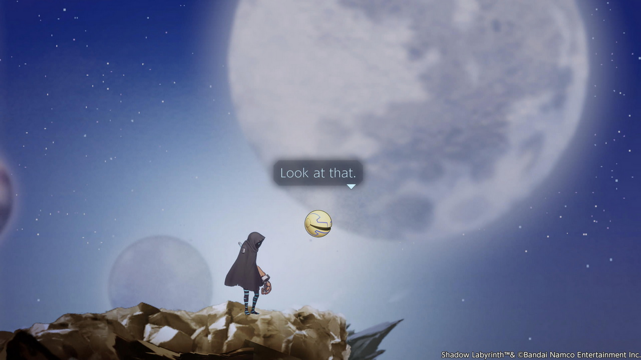 Αντίστοιχα ανάμεικτα συναισθήματα προκαλεί και το σενάριο το οποίο είναι λίγο φλου, αν και η βάση του θα χαρακτηριζόταν ως υπέρμετρα φιλόδοξη. Παρ’ ό,τι το παιχνίδι έχτισε πάνω στο επεισόδιο του Secret Level, μπορούμε να καθησυχάσουμε τον κόσμο ότι το Shadow Labyrinth δεν απαιτεί από τους χρήστες προγενέστερες γνώσεις από άλλα μέσα. Η ιστορία ξεκινά με μια ενδιαφέρουσα ιδέα, όπου ο παίκτης, ως Swordsman No. 8, ξυπνά σε έναν μυστηριώδη πλανήτη υπό την καθοδήγηση του Puck (μια σκοτεινή εκδοχή του Pac-Man). Εντυπωσιακή είναι και η προσπάθεια σύνδεσης του τίτλου με το ευρύτερο United Galaxy Space Force σύμπαν της Bandai Namco, με αναφορές σε παιχνίδια όπως Galaga και Xevious. Αυτό σίγουρα θα συγκινήσει τους πιο παλιούς gamers, αλλά δύσκολα διατηρεί τη μαγεία του μέχρι τέλους. Ο λόγος είναι άλλη μία ανισορροπία στο Shadow Labyrinth που έχει να κάνει αυτήν τη φορά με την εξιστόρηση των γεγονότων. Κάποια σημεία είναι υπερβολικά αινιγματικά, κάποιοι διάλογοι φλύαροι και χωρίς ουσία, ενώ απουσιάζουν οι έντονες ανατροπές που θα κρατούσαν το ενδιαφέρον. Κάπου εκεί, η προσοχή στρέφεται αποκλειστικά στην εξερεύνηση.