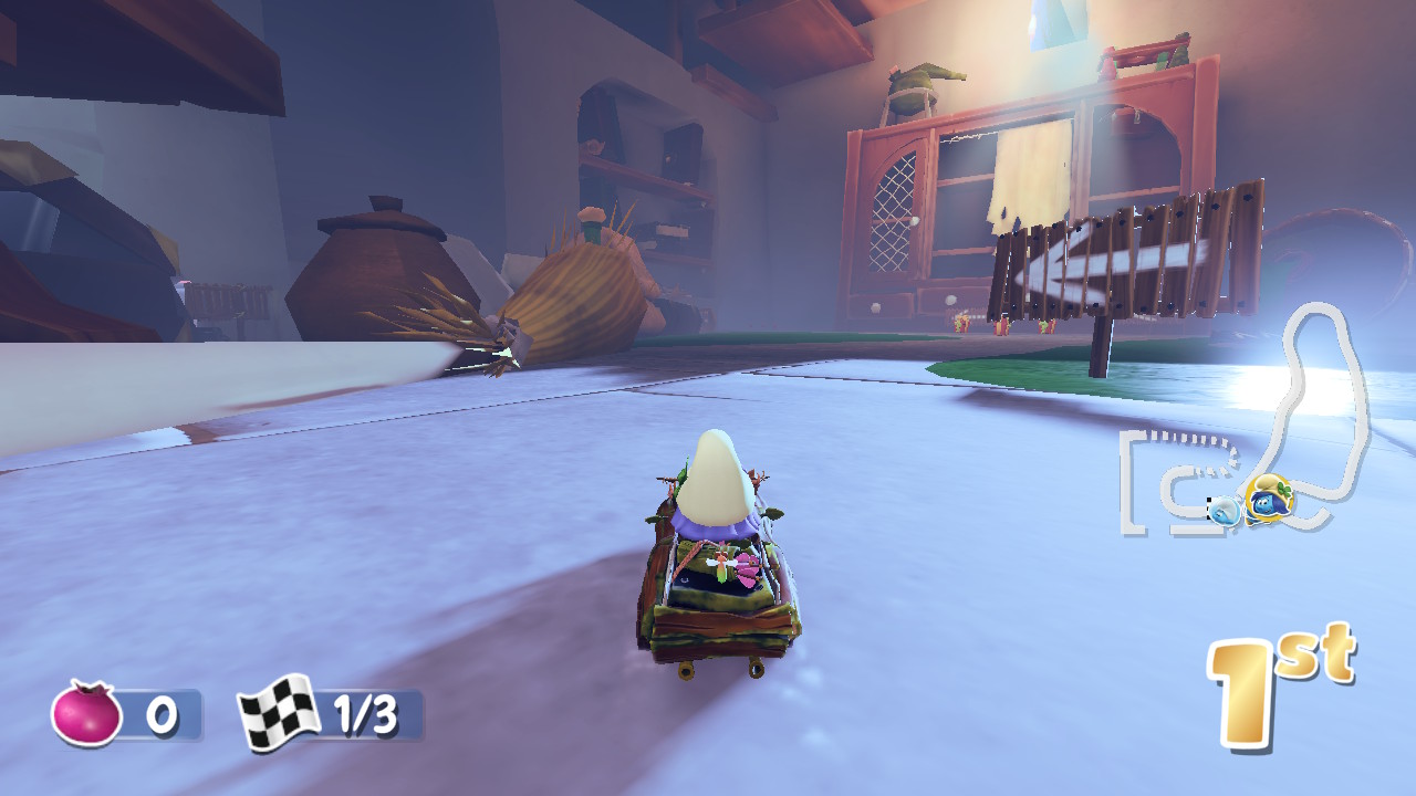 Τα υποφωτισμένα σημεία θα σας σπάσουν τα νεύρα, αφού είναι πολύ εύκολο να σας αποπροσανατολίσουν και σε συνδυασμό με την κάμερα που δεν εστιάζει σωστά σε πολλές περιπτώσεις αλλά και τη μη επαρκή σήμανση θα σας βγάλουν εκτός δρόμου, γεγονός που θα επιτρέψει στους αντίπαλους να σας προσπεράσουν. Κάποιες παγίδες, shortcuts και speed boosters είναι οι μοναδικές προσπάθειες να σπάσει κάπως η μονοτονία. Αν το έχετε στο μυαλό σας, ναι τα kart κάνουν drift-όχι ότι ο μηχανισμός λειτουργει πάντα- και μάλιστα αν η διάρκειά του είναι μεγαλύτερη από μερικά δευτερόλεπτα, τότε το όχημά σας επιταχύνει για ένα μικρό χρονικό διάστημα. Μην ξεχάσουμε και τα power ups, η ποικιλία των οποίων είναι πολύ μικρή και είναι ένας ακόμα τομέας που είναι ξεκάθαρη η προχειρότητα της παραγωγής. Συν τα άλλα, κάθε Smurf έχει και το δικό του, ξεχωριστό power up, όμως αυτό θα πρέπει απλά να το πετύχετε σε κάποιο από τα κουτιά δώρων που υπάρχουν διάσπαρτα στον δρόμο. Έξυπνο ως ιδέα, αλλά θα μπορούσε να έχει υλοποιηθεί με πολύ πιο ενδιαφέροντα τρόπο. Επιπλέον, δεν θα είναι λίγες οι φορές που ενώ "στρίβετε" προς τη σωστή κατεύθυνση θα σας δημιουργηθεί η αίσθηση πως κάτι δεν πάει καλά και ένα αόρατο χέρι σας σπρώχνει προς την αντίθετη τροχιά. Είναι το smart steering, που μόνο έξυπνο δεν είναι. Αν δε βρεθείτε σε άμμο, το μόνο σίγουρο είναι πως το kart θα γλιστράει τόσο λες και πρόκειται για παγωμένο τερέν.