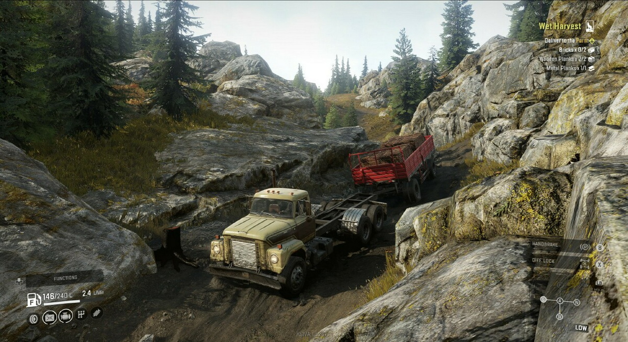 Σίγουρα, ο τίτλος δεν πετάει τους παίκτες στα βαθιά από την πρώτη στιγμή, και όσοι είναι καινούριοι στον κόσμο του θα έχουν πολλές ευκαιρίες να μάθουν τους βασικούς μηχανισμούς μέσα από tutorials και on-screen guides. Η αλήθεια είναι πάντως ότι ο βαθμός δυσκολίας από ένα σημείο αρκετά νωρίς ανεβαίνει κατακόρυφα και εκεί είναι το σημείο που κανείς καταλαβαίνει αν πραγματικά του αρέσει όλο αυτό σαν concept. Γιατί αν ήμασταν πολύ ρηχοί θα λέγαμε ότι είναι ένας τίτλος που πρακτικά ποντάρει πάνω στα physics της λάσπης, του χιονιού και του πάγου, και το πως θα συμπεριφερόταν ένα όχημα πάνω σε αυτά, κατά προτίμηση φορτηγό. Είναι τόσο απλό. Αυτή είναι η κεντρική φιλοσοφία, και γύρω από αυτό περιφέρονται οι αποστολές που ανατίθενται στους παίκτες και τους βάζουν να μεταφέρουν τόνους εμπορευμάτων από τη μία άκρη του χάρτη στην άλλη, στην λάσπη και το χιόνι.