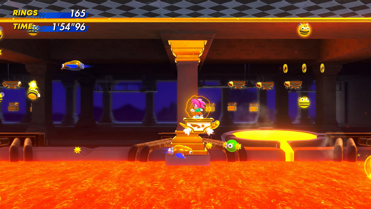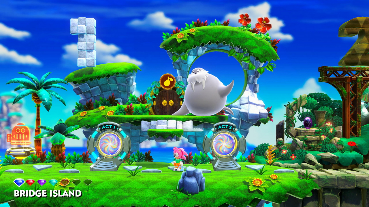 Ένα παρόμοιο θέμα είχαμε με την εξερεύνηση των πιστών με διαφορετικούς χαρακτήρες, η οποία σαν ιδέα έχει λογική, αλλά έλειπε ένα κομμάτι του παζλ ώστε να γίνει πιο διασκεδαστική. Οι χρήστες μπορούν να επιλέξουν ανάμεσα στους Sonic, Knuckles, Tails και Amy, με την Amy να έχει μακράν την καλύτερη ικανότητα, αυτή του Double Jump. Σε κάποιες πίστες πρέπει αναγκαστικά να χρησιμοποιήσουμε έναν συγκεκριμένο χαρακτήρα, αλλά αν μπορούσαμε θα βγάζαμε το παιχνίδι αποκλειστικά με την Amy. Το διπλό πήδημα παρέχει τρομερές ευκολίες, ενώ βοηθάει και στην αντιμετώπιση κάποιων πιο απαιτητικών boss fights με αποτέλεσμα να υπάρχει μία ανισορροπία ανάμεσα στους χαρακτήρες. Κάποια σημεία των πιστών απαιτούν να τα επισκεφθούμε ξανά με άλλους χαρακτήρες, κάτι που προφανώς μας αρέσει γιατί διευρύνει τη συνολική διάρκεια όπως θα θέλαμε από ένα platformer. Σίγουρα όμως, θα ήταν ακόμη πιο ωραία μία πιο εύκολη και άμεση αλλαγή του χαρακτήρα εντός των levels. Μέσα σε αυτό το όμορφο χάος που εξελίσσεται στις πιο μεγάλες και απαιτητικές πίστες, θα ήταν έξυπνο να μπορούσαμε να αλλάξουμε τον χαρακτήρα μονομιάς και να ανακαλύψουμε εκείνη τη στιγμή τα εναλλακτικά paths, χωρίς να χρονοτριβούμε με το να βγούμε στο προηγούμενο μενού και να ξεκινήσουμε τα πάντα από την αρχή με άλλο χαρακτήρα. Προφανώς και αυτή η επιλογή των developers δεν είναι κάτι καινούργιο, απλώς το στήσιμο και η γενικότερη δομή κάποιων επιπέδων μας έβγαλε αυτό το παράπονο.