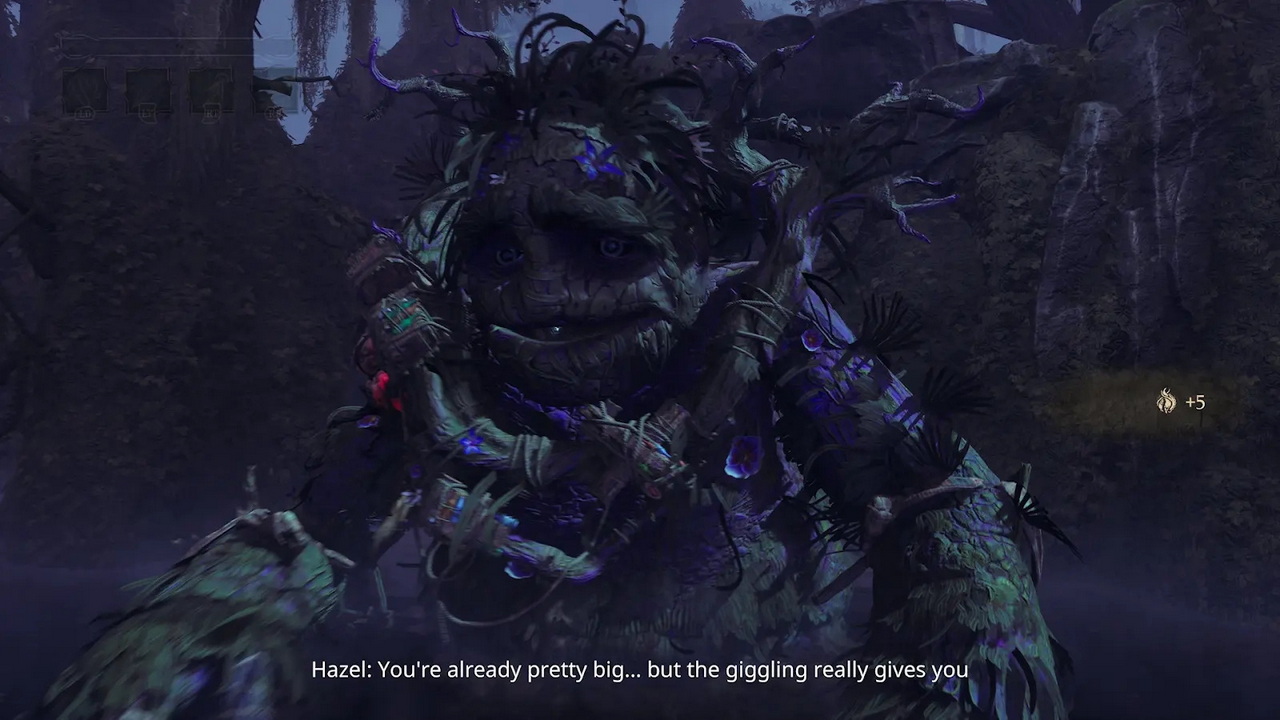 To gameplay είναι χωρισμένο σε δύο κομμάτια. Το ένα είναι αυτό της εξερεύνησης και των μετακινήσεων από σημείο σε σημείο. Δεν υπάρχουν περιπτώσεις όπου η πρωταγωνίστρια θα χάσει τον δρόμο της και θα χαθεί στους βάλτους. Έτσι και αλλιώς, με μια κίνηση αποκαλύπτεται κάθε φορά η διαδρομή που πρέπει να ακολουθήσει προς τον επόμενο στόχο. Η εξερεύνηση κάθε περιοχής θα βοηθήσει στο να συγκεντρωθούν πληροφορίες οι οποίες συμπληρώνουν την αφήγηση, Floofs για την αναβάθμιση των ικανοτήτων της Hazel- μια πολύ βασική δεντροειδής μορφή- αλλά και αναβαθμίσεις για την υγεία της. Η ομάδα ανάπτυξης έχει υλοποιήσει αρκετούς μηχανισμούς platforming, που κατά βάση δεν θα σας δημιουργήσουν προβλήματα, εκτός από περιπτώσεις που θα «κολλήσουν» τα πάντα και δεν θα υπάρχει η οποιαδήποτε ανταπόκριση στις εντολές χειρισμού. Ένα ακόμα «μελανό» σημείο είναι ο τρόπος με τον οποίο λειτουργούν οι προτροπές για την επόμενη εντολή που θα πρέπει να χρησιμοποιήσει ο παίκτης. Για παράδειγμα, μπορεί να βρίσκεται πολύ κοντά στο κλαδί ενός δέντρου, εκεί να γνωρίζει πως πρέπει να χρησιμοποιήσει το LT για να περάσει από ένα χάσμα, όμως επειδή δεν «έβλεπε» την ένδειξη του LT τη στιγμή που επιχειρούσε την κίνηση, καταλήγει στο κενό. Όσο περνάει η ώρα, αυτό αποτυπώνεται στο μυαλό, όμως σίγουρα δεν βοηθάει σε καταστάσεις όπου η Hazel βρίσκεται κυνηγημένη και πρέπει να βάλει τα πόδια στους ώμους.