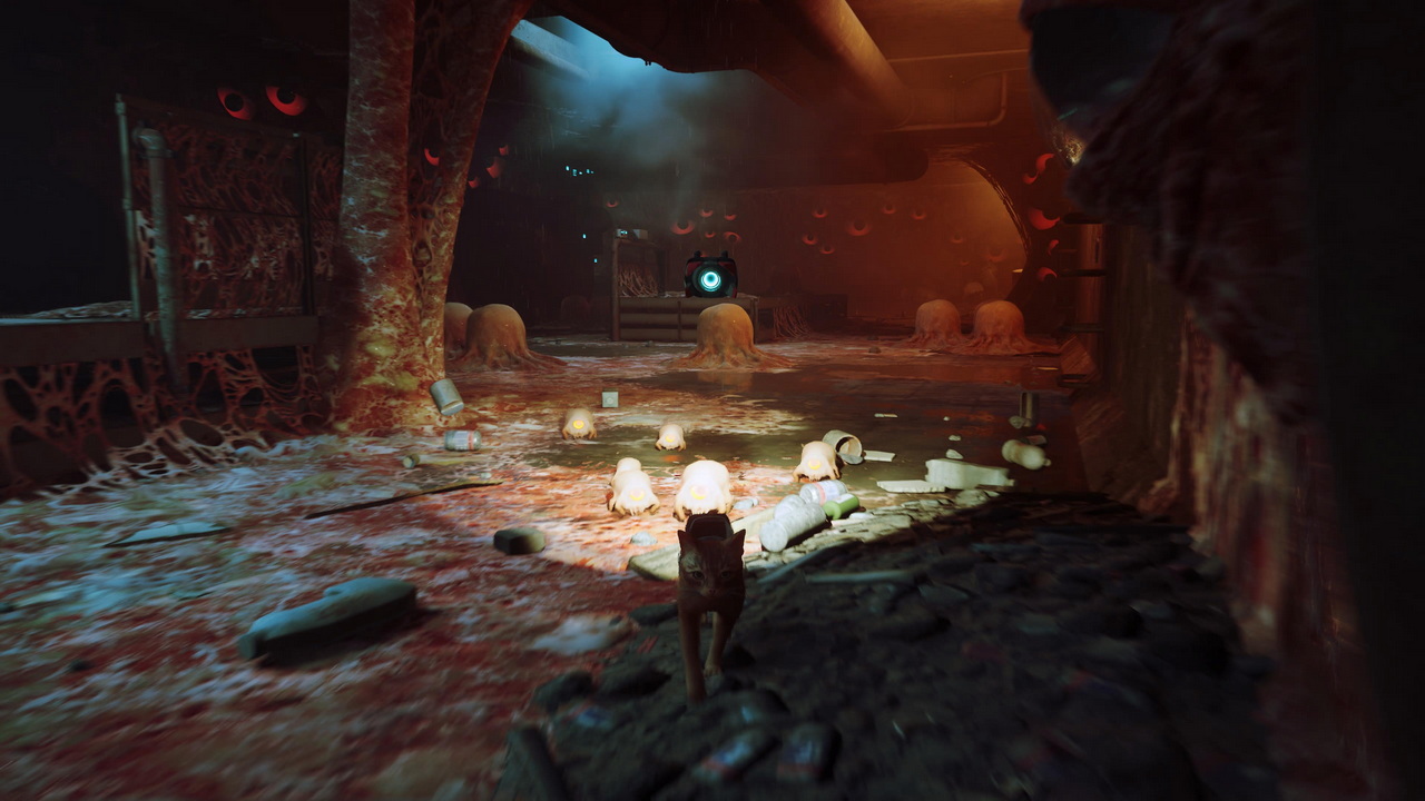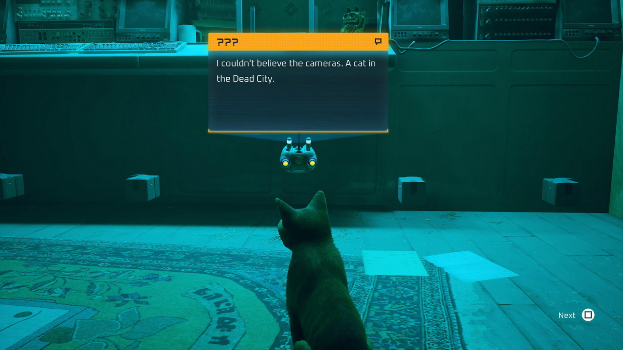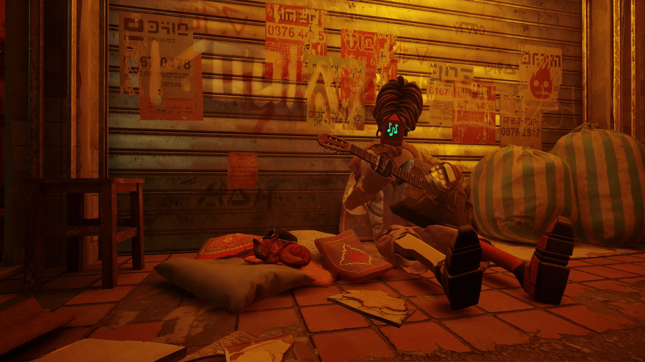 Παρ’ ό,τι υπάρχουν κάποιες ανισορροπίες ως προς το περιεχόμενο των περιοχών το οποίο θα μπορούσε να διορθωθεί με λίγο περισσότερο content αυξάνοντας οργανικά την διάρκεια του “Stray”, ομολογούμε ότι το παιχνίδι μας παρέσυρε στο να επενδύσουμε παραπάνω χρόνο για να λύσουμε ακόμη και κάποιους γρίφους που δεν επηρέαζαν το βασικό progress. Γύρω από την ιστορία υπάρχει ένα έντονο ενδιαφέρον για το τι συνέβη στον κόσμο του Stray και γενικότερα πιάσαμε τους εαυτούς μας να θέλουμε να μιλήσουμε με κάθε περίεργο κάτοικο των περιοχών που συναντήσαμε, όχι από αγγαρεία, αλλά επειδή ο τίτλος μας έσπρωχνε με όμορφο τρόπο προς αυτήν την κατεύθυνση. Χαρακτηριστικότερο παράδειγμα από την αναζήτησή μας για το τρίτο κουτάκι αναψυκτικού ώστε να το δώσουμε στον πλανόδιο πωλητή δεν υπάρχει, αφού η ολοκλήρωσή του δεν επηρέαζε σε κάποιο βαθμό το αν θα προχωρήσουμε στο επόμενο κεφάλαιο του Stray. Τα συγκεκριμένα κουτάκια θα μας έδιναν απλώς την ευκαιρία να αγοράσουμε ένα item που ήταν καλυμμένο με πανί και πραγματικά επενδύσαμε πολύ χρόνο ώστε να λύσουμε το μυστήριο από καθαρή περιέργεια. Μία περιέργεια που μεγάλωνε ώρα με την ώρα ακριβώς επειδή η πρώτη πόλη μας έδινε πολλά από άποψη εξερεύνησης και σεναρίου.