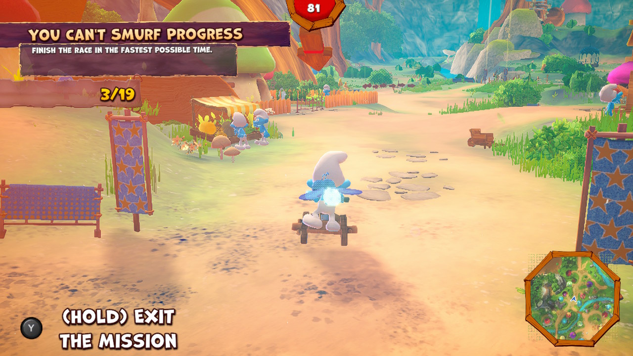 H αναφορά στα kart racers δεν είναι τυχαία, αφού σε εκείνο το παιχνίδι τα Στρουμφάκια προσπάθησαν φυσικά να πάρουν ιδέες από το Mario Kart, έτσι και το The Smurfs Village Party κοίταζε με κλεφτές ματιές προς τη μεριά του Mario Party ή του Crash Bash. Σε αυτό το σημείο θα θέλαμε μάλιστα να πούμε ότι η Balio Studio αποφάσισε να κάνει κάτι πιο θαρραλέο και να συμπεριλάβει ένα Adventure Mode. Το Mode αυτό μπορεί να μη ξεπερνάει τις 4 ώρες, αλλά στα χαρτιά προσφέρει μία πρώτης τάξεως ευκαιρία στους παίκτες να γνωρίσουν τα παιχνίδια μέσω μίας ανάλαφρης ιστορίας και ενός μεγάλου χάρτη. Πρέπει να τονίσουμε όμως την έκφραση “στα χαρτιά“, γιατί στην πράξη δυστυχώς τα πράγματα δεν εξελίσσονται όπως θα θέλαμε. Mέτριο platforming, ενοχλητική σε σημεία κάμερα, ελάχιστη πρόκληση στον βαθμό που κάνει κακό στη συνολική εμπειρία και ένας παραγεμισμένος με ενδείξεις χάρτης συνθέτουν ένα κοκτέιλ εμπειριών που δεν πίνεται με μεγάλη ευχαρίστηση. Τα φίλτρα στον χάρτη ναι μεν βοηθούν στο να αποφορτιστεί το περιβάλλον, αλλά το αργό fast travel και τα τεχνικά προβλήματα που για κάποιον λόγο ήταν πιο έντονα στο adventure mode, μας έκαναν κάποιες στιγμές να απογοητευτούμε.