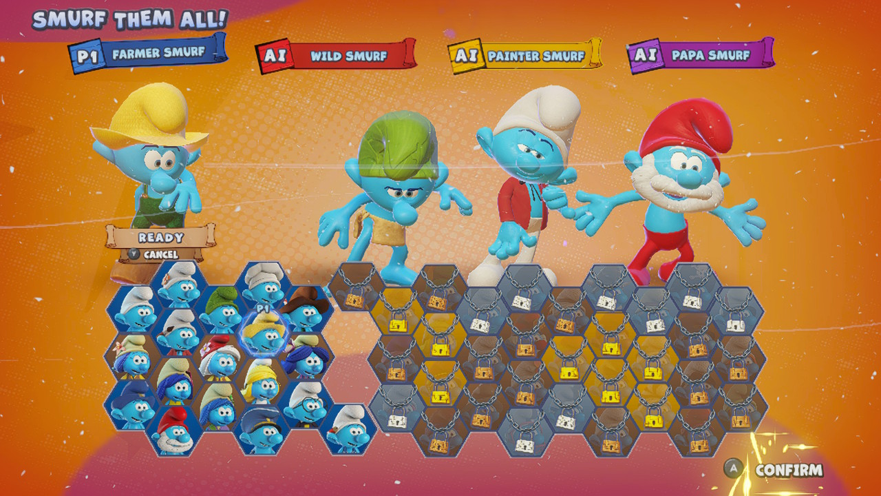 Από εκεί και πέρα, το αρχικό μενού προσφέρει τα “Village Party” (ξεκλειδώνει μετά την ολοκλήρωση του Adventure Mode), “Challenge” και “Smurf Them All!”, με το τελευταίο να μας κρατάει το μεγαλύτερο ενδιαφέρον μακροπρόθεσμα για γρήγορα local multiplayer ματς. Σε αυτό το mode μπορούμε να δημιουργήσουμε μίνι τουρνουά από Mini games όπου αλλάζουμε τον βαθμό δυσκολίας, τον αριθμό των mini-games και φυσικά πόσοι παίκτες και AI users θα συμμετέχουν. Αυτό που μας προκάλεσε μία έκπληξη (για να μη πούμε σοκ), είναι το γεγονός ότι απουσιάζει πλήρως η online εμπειρία. Προφανώς τα party games φτάνουν τον υπέρτατο βαθμό διασκέδασης μέσω του local multiplayer, αλλά αυτό δεν αλλάζει την ανάγκη για online δραστηριότητες, έστω μέσω ενός μικρού leaderboard. Όταν μάλιστα η ΑΙ των αντιπάλων δεν είναι και για πολλά, θεωρούμε ότι η απουσία των διαδικτυακών λόμπι θα κάνει μακροπρόθεσμα κακό στο The Smurfs Village Party.