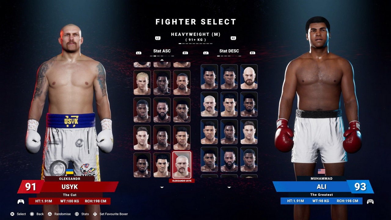 To roster έχει μια μεγάλη ποικιλία με πάνω από 70 αθλητές όπως ο Muhammad Ali, ο Sugar Ray Leonard και ο Roy Jones Jr μέχρι και αθλητές του σήμερα, όπως ο Terence Crawford, ο Tyson Fury και ο Canelo Alvarez. Φυσικά δεν θα μπορούσε να λείπει και το γυναικείο πρωτάθλημα με σημαντικές προσθήκες, μεταξύ των οποίων η Katie Taylor, Jessica McCaskill, Natasha Jones και Ebanie Bridges. Παρόλο που ο σχεδιασμός των μοντέλων και η απεικόνιση των προσώπων ανταποκρίνονται πιστά στο προφίλ του εκάστοτε αθλητή, οι εκφράσεις τους κατά τη διάρκεια του αγώνα είναι μετρημένες στα δάχτυλα, ιδιαίτερα ξύλινες και τις περισσότερες φορές είναι δύο ταχυτήτων. Στην αρχή του αγώνα θα είναι ανέκφραστοι ενώ όταν δεχτούν τα πρώτα χτυπήματα θα συνοφρυωθούν- λες και κάποιος πάτησε την παύση κατά τη διάρκεια ενός βίντεο και η στιγμή που αποθανατίστηκε πρέπει να στιγματίσει τον χαρακτήρα κατά τη διάρκεια του αγώνα. Βέβαια αυτό μοιάζει επιτυχία μπροστά στις ελάχιστες κινήσεις και του διαιτητή που φαίνεται πως έχει αναλάβει τα χρέη μαριονέτας.
