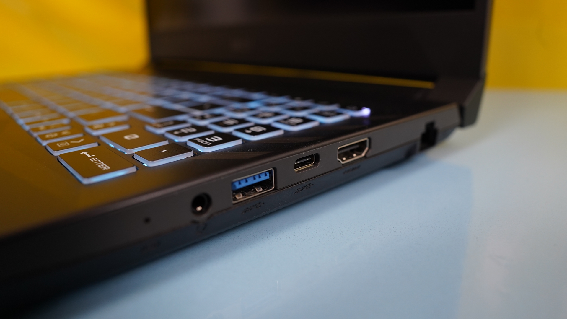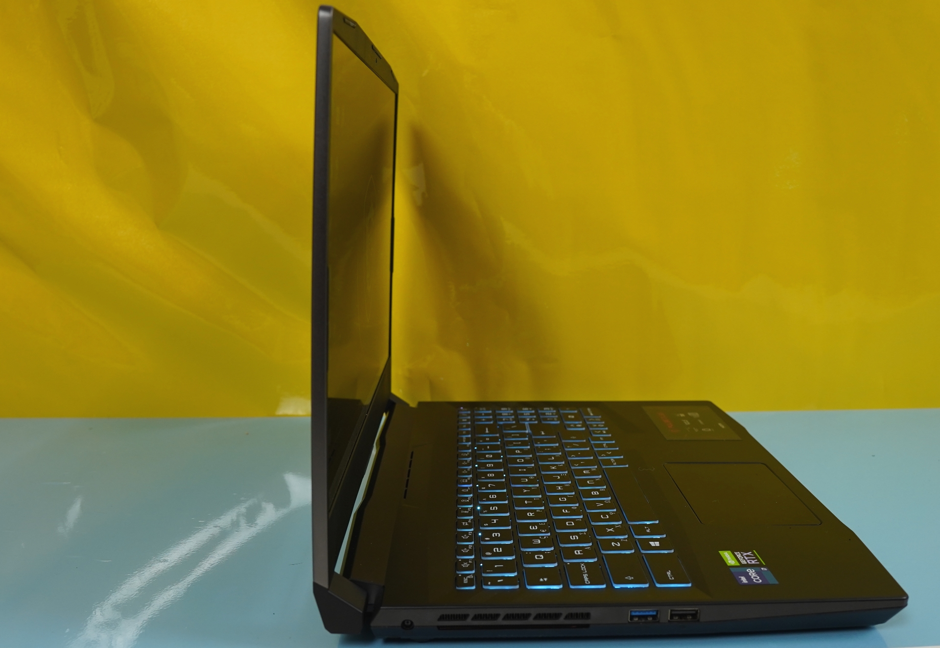 Η οθόνη έχει διαγώνιο 15,6’’ και λειτουργεί σε ανάλυση Full HD, προσφέρει πολύ καλές γωνίες θέασης (καθώς είναι IPS), με τα χρώματά της να είναι αρκετά καλά. Δε παρατηρήσαμε backlight bleeding, κάτι που μας έκανε εντύπωση. Από την άλλη πάντως, η μέγιστη φωτεινότητα είναι μάλλον μέτρια. Επαρκεί για χρήση σε ένα όχι καλά φωτισμένο χώρο, όμως κάτω από το φως του ήλιου τα πράγματα δεν είναι καλά. Αξίζει να αναφέρουμε πως η οθόνη καλύπτεται από μια ελαφρώς anti-glare επίστρωση που βοηθάει ώστε να μειώνονται οι αντανακλάσεις. Το panel είναι HRR και λειτουργεί στα 144Hz, με τη δεύτερη επιλογή που δίνουν τα Windows να είναι τα 60Hz. Δυστυχώς, το panel δεν υποστηρίζει κάποια τεχνολογία variable refresh rate (πχ Gsync). Από πλευράς θυρών, διαθέτει τις απαραίτητες.