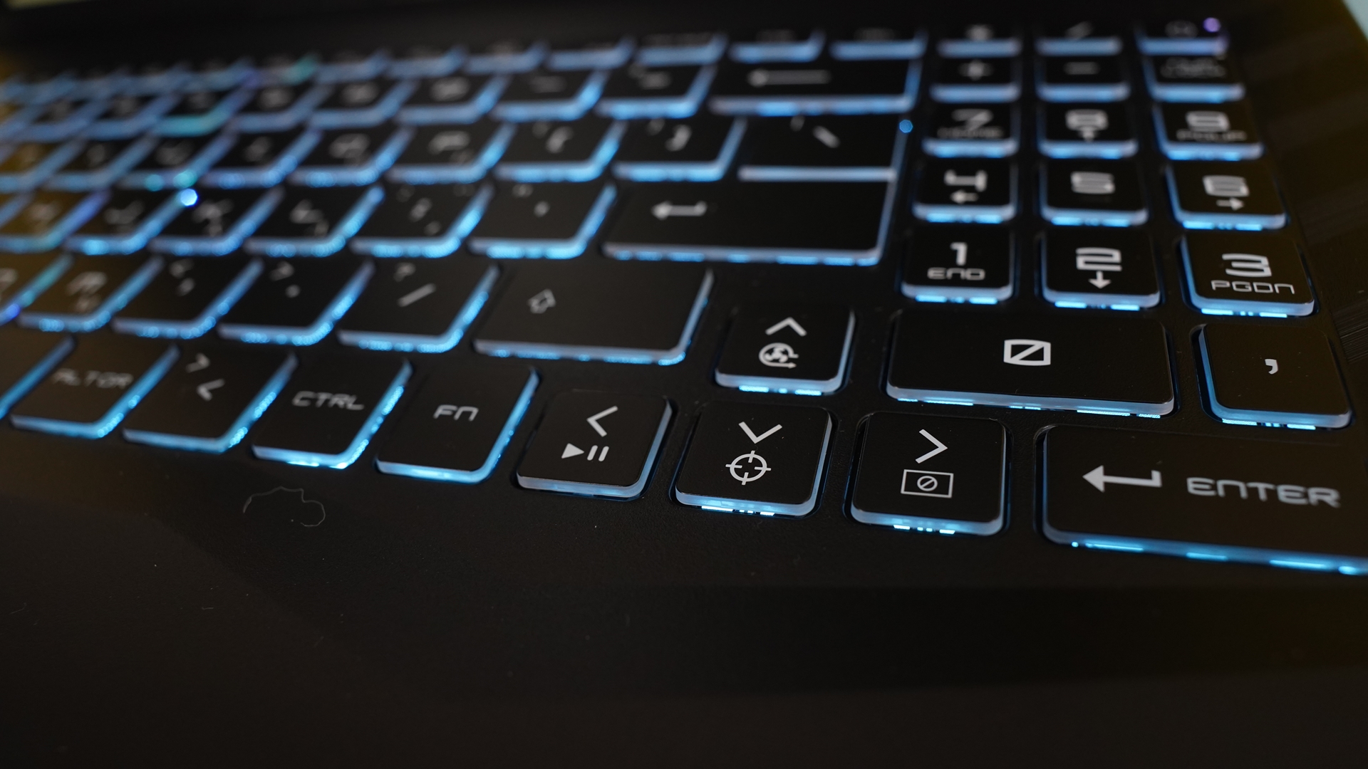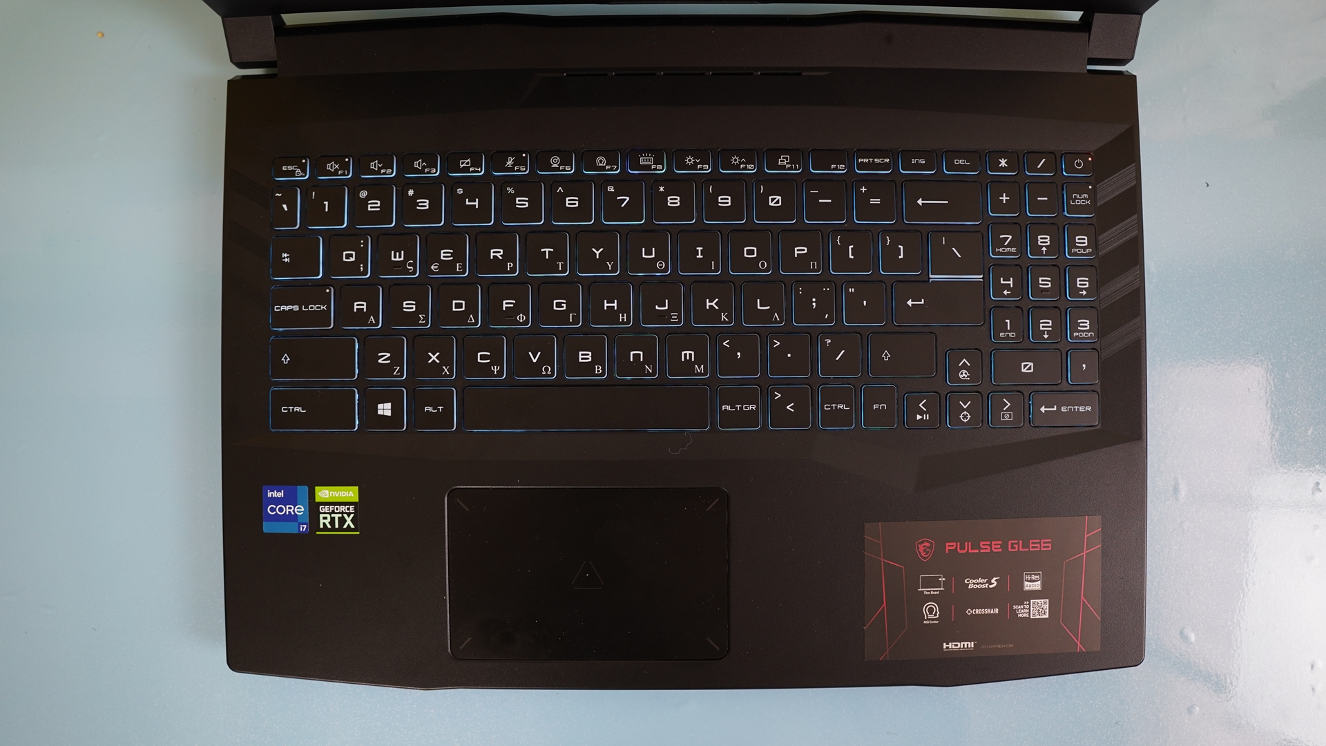 Όλα τα πλήκτρα είναι φωτιζόμενα με αρκετούς διαφορετικούς τρόπους φωτισμού να είναι διαθέσιμοι μέσα από την επιλογή Mystic Light της εφαρμογής MSI Center. Πάντως, ακόμα και στη μέγιστη ένταση φωτισμού, δε μπορούμε να πούμε ότι «λαμποκοπάνε» και σίγουρα την ημέρα δε φαίνονται ιδιαίτερα. Μάλιστα, το πάτημα του συνδυασμού Fn και F8, επιφέρει άμεση αλλαγή του τρόπου φωτισμού, χωρίς όμως αυτή να φαίνεται μέσω του Mystic Light. Κάτι που πρέπει να σημειώσουμε αφορά στο πλήκτρο Fn, καθώς υπάρχει μόνο ένα, τοποθετημένο σε άβολο σημείο, ακριβώς αριστερά από τα βελάκια. Όσον αφορά στο touchpad, αυτό έχει μέτριο μέγεθος σε εμβαδό, έχει καλή κύλιση και τα clicks του λειτουργούν απροβλημάτιστα.