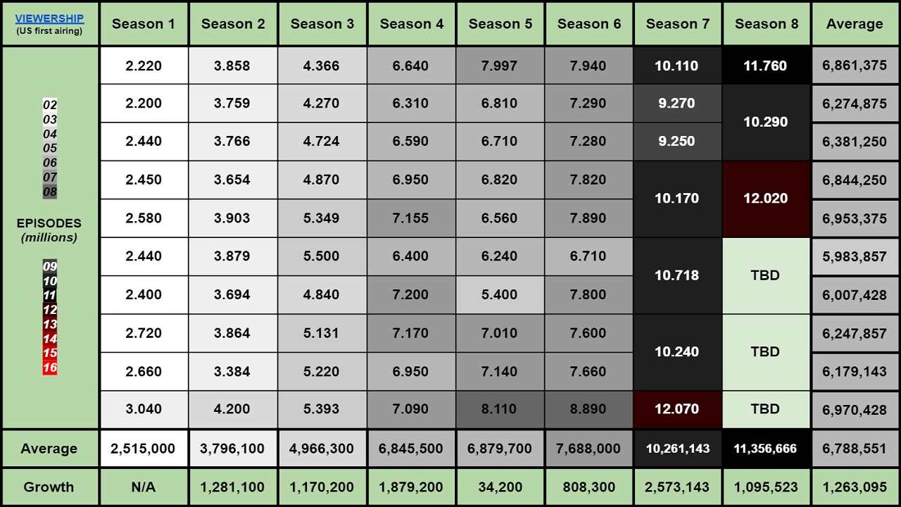Η όγδοη και τελευταία σεζόν της σειράς Game of Thrones σπάει το ένα ρεκόρ τηλεθέασης μετά το άλλο, κάτι που προφανώς δείχνει το τεράστιο ενδιαφέρον του κοινού. Μάλιστα το πρόσφατο επεισόδιο με τίτλο “The Long Night” κυριολεκτικά καθήλωσε τους οπαδούς της σειράς παγκοσμίως. Σύμφωνα με τα στοιχεία που δόθηκαν στη δημοσιότητα, 12,02 εκ. τηλεθεατές παρακολούθησαν σε πρώτη προβολή και αν στο νούμερο αυτό προστεθούν όσοι προτίμησαν το HBO GO και το HBO NOW, το σχετικό νούμερο φτάνει τα 17,8 εκ. που είναι ρεκόρ για τη σειρά αλλά και το τηλεοπτικό δίκτυο. Το προηγούμενο ρεκόρ δεν κράτησε για πολύ και ανήκε στο επεισόδιο "Winterfell", το πρώτο δηλαδή της 8ης σεζόν, που παρακολούθησαν σε πρώτη προβολή 17,4 εκ. άνθρωποι. Από τότε ο συνολικός αριθμός προβολών έχει φτάσει τα 38 εκ. Επιπλέον κατά τη διάρκεια προβολής του "The Long Night" υπήρξαν 7,8 εκ. σχετικά tweets αριθμός που αποτελεί επίσης νέο ρεκόρ. Για να δούμε, ποια θα είναι τα επόμενα επιτεύγματα της δημοφιλούς σειράς.