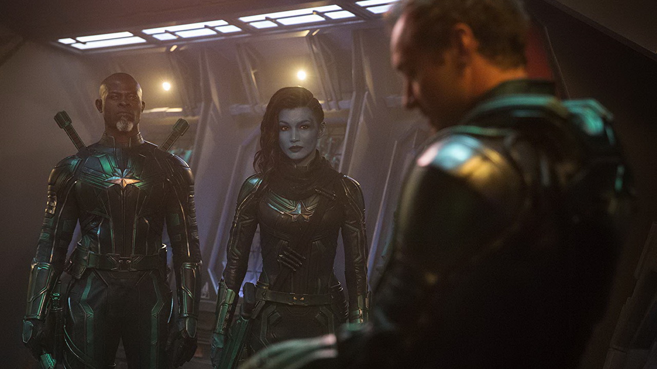 Εδώ εντοπίζεται και το μοναδικό ευχάριστο κομμάτι της ταινίας, καθώς η Κάρολ προσγειώνεται κακήν-κακώς σε ένα τεράστιο video club της αλυσίδας Blockbuster, στο Λος Άντζελες του 1995 (δεν ξέρουμε γιατί, δεν ρωτάμε…). Αμέσως είναι ορατή η χιουμοριστική διάθεση των αναφορών στο παρελθόν, με πιο χαρακτηριστικό εκείνο της καταστροφής ενός stand του Άρνολντ Σουορτσενέγκερ και της ταινίας «Αληθινά Ψέματα» από πυρά της ηρωίδας (ξέχασα να αναφέρω πως η δύναμη της Κάρολ εντοπίζεται στις παλάμες της που εκτοξεύουν ενέργεια), εν μέσω αμέτρητων ραφιών με… κασέτες VHS! Ξεχωρίζω αυτό το παράδειγμα, διότι εδώ η αφήγηση κατακλέβει στοιχεία από τους δύο πρώτους «Εξολοθρευτές» του Τζέιμς Κάμερον (η Κάρολ είναι κάτι σαν τον αντίστοιχο Terminator και οι Σκρολ που βρίσκονται στο κατόπι της μορφοποιούνται σε διαφορετικές ανθρώπινες όψεις όπως έκανε και ο T-1000).Σκάει μύτη και ο… Νικ Φιούρι της δεκαετίας του ’90, με πιο digital φρεσκαδούρα look για τον Σάμιουελ Λ. Τζάκσον, ο οποίος προσθέτει ακόμη περισσότερες δόσεις comic relief στο όλο μπάχαλο, που είναι γεμάτο από τραγούδια της εποχής για να κλείνουν το μάτι και στην pop κουλτούρα, ενίοτε με στιχουργικό σημείο ταύτισης (τύπου «Just a Girl» από τους No Doubt, το ‘πιασες;), αλλά με σκηνές καταδίωξης και πάλης εντελώς βαρετές και ανέμπνευστες σκηνοθετικά.