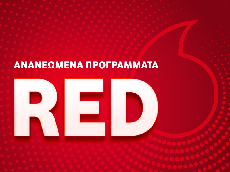 H Vodafone παρουσιάζει τα ανανεωμένα προγράμματα κινητής Vodafone RED, τις πιο ολοκληρωμένες προτάσεις συμβολαίου για νέους ιδιώτες συνδρομητές, που προσφέρουν απεριόριστη ομιλία προς όλα τα εθνικά δίκτυα και πολλές επιλογές σε data, καλύπτοντας κάθε ανάγκη για επικοινωνία, από μόλις 17€/μήνα, καθώς και δωρεάν διπλασιασμό data για όσους/ες συνδυάσουν το συμβόλαιο κινητής με σταθερή Vodafone.
