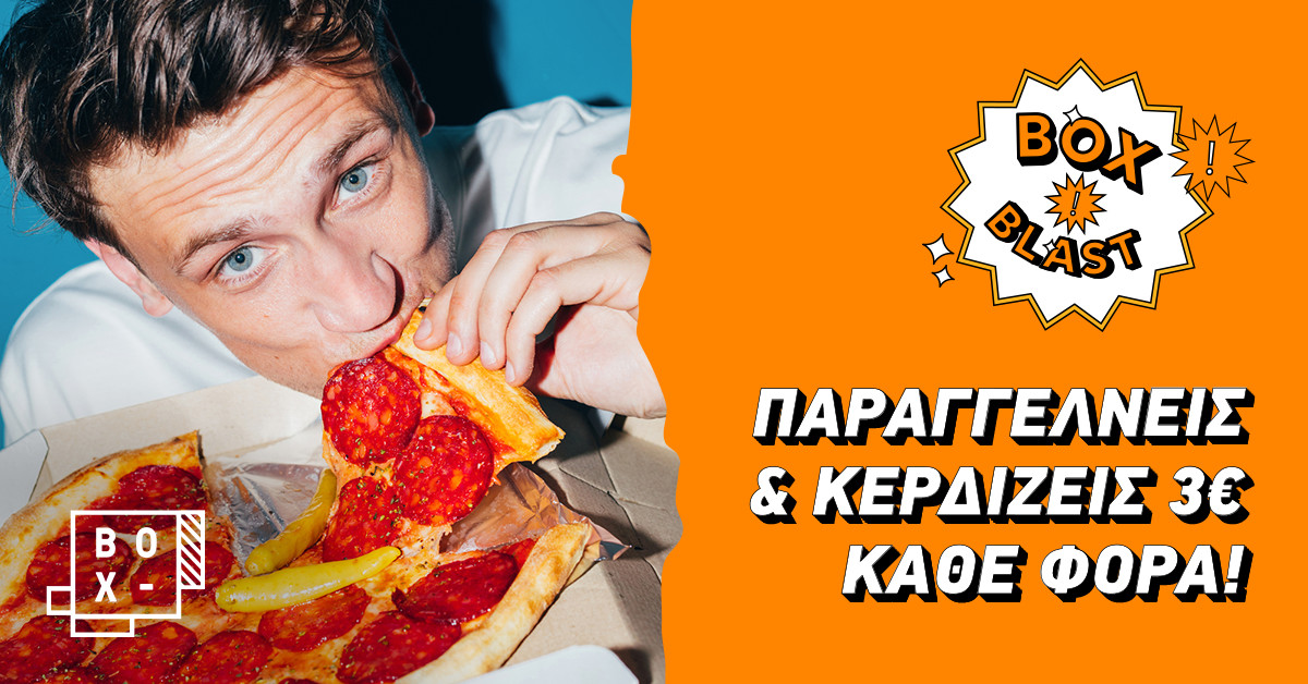 Με το BOX BLAST ο χρήστης κερδίζει 3€ στην πρώτη του παραγγελία, αλλά και κουπόνι 3€ για την αμέσως επόμενη παραγγελία που θα πραγματοποιήσει από τα χιλιάδες καταστήματα που συμμετέχουν στην ενέργεια.