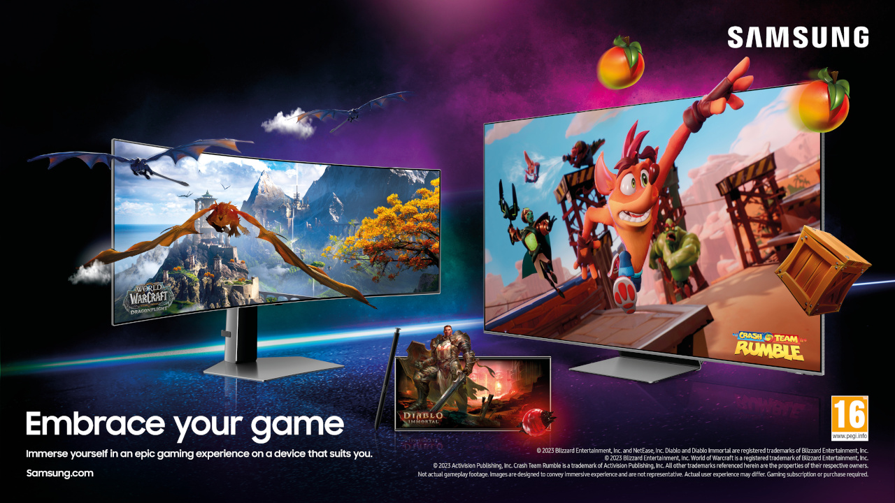 Η καμπάνια Embrace Your Game συγκεντρώνει εκπληκτικά προϊόντα, καθώς και μερικά από τα πιο δημοφιλή παιχνίδια, σε μια πρωτότυπη συνεργασία. Απευθύνεται σε παίκτες της Samsung σε 17 αγορές και 44 χώρες. Ταυτόχρονα, θα χρησιμοποιήσει μερικούς από τους πιο διάσημους τίτλους παιχνιδιών της Activision Blizzard, συμπεριλαμβανομένων των Crash Team Rumble, Diablo Immortal, Overwatch 2 και World of Warcraft σε μια πλήρως καθηλωτική δημιουργική σουίτα, ζωντανεύοντας τους κόσμους των παιχνιδιών, ανεξαρτήτως αν οι χρήστες βρίσκονται εν κινήσει ή στο σπίτι.