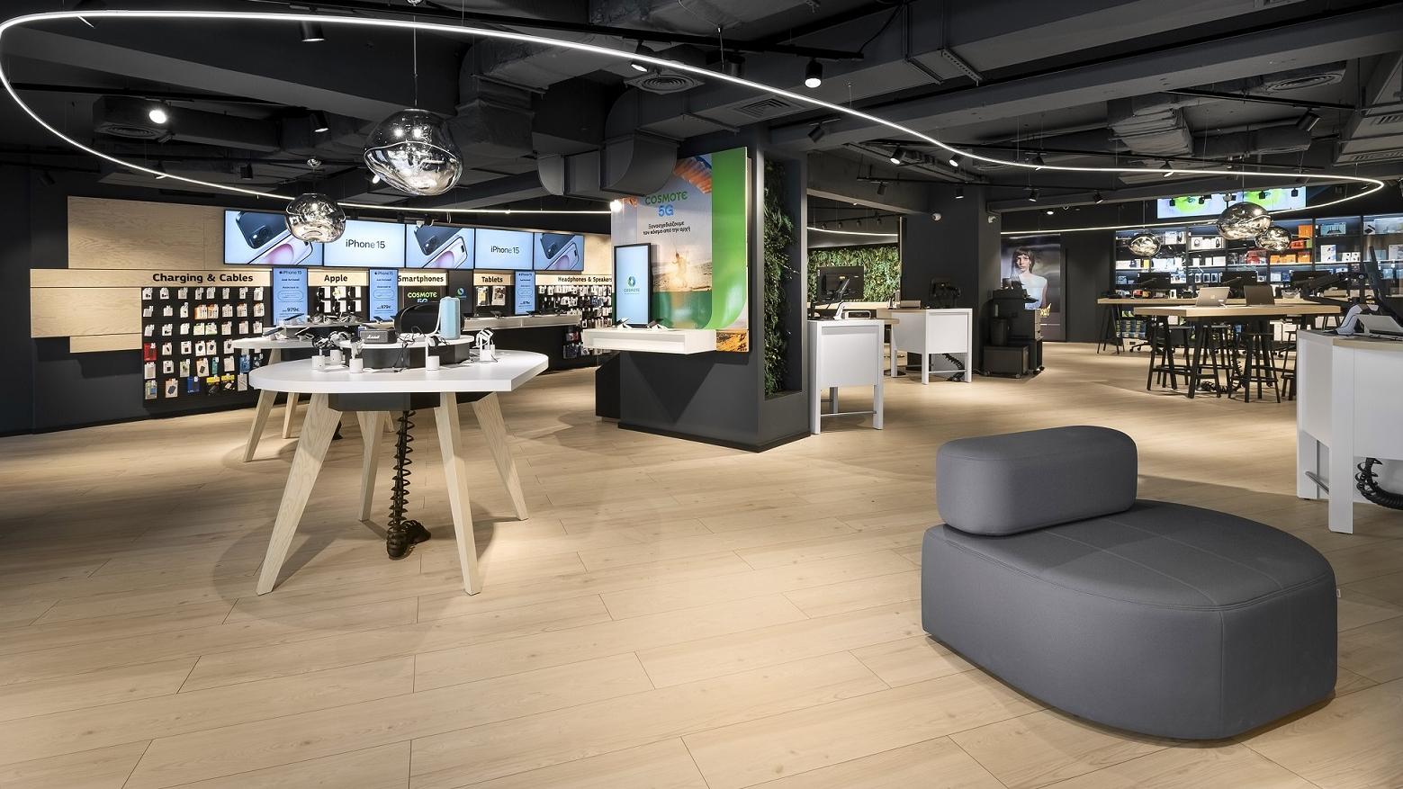 Ακολουθώντας τις πιο σύγχρονες αρχιτεκτονικές τάσεις, τα ανακαινισμένα καταστήματα COSMOTE είναι σχεδιασμένα με καινοτόμα υλικά, άνετους και οικείους χώρους, είναι πιο λειτουργικά αλλά και πιο διαδραστικά. Με στόχο να καλύπτουν πλήρως τις ανάγκες των πελατών τους, παρέχουν µία ευρεία γκάµα προηγμένων προϊόντων τεχνολογίας όπως smartphones, tablets, laptops, αξεσουάρ, smartwatches, τηλεοράσεις, έξυπνες λύσεις για το σπίτι, καθώς και ολοκληρωμένες λύσεις και υπηρεσίες COSMOTE σε σταθερή και κινητή τηλεφωνία, Internet και τηλεόραση. Επιπλέον, διαθέτουν θεματικές ζώνες και νέες σχεδιαστικές γραμμές που αναδεικνύουν το προϊοντικό τους portfolio και διευκολύνουν την περιήγηση του επισκέπτη στον χώρο.