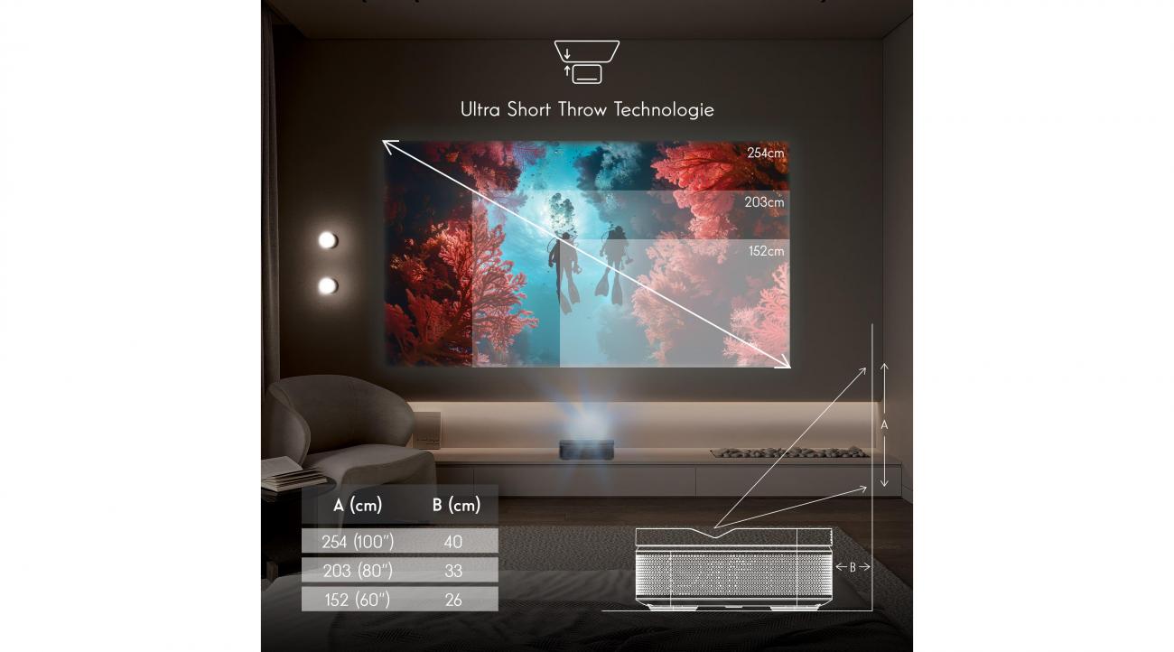 | Μέγιστο μέγεθος οθόνης | Έως 100" | Έως 100" από μόλις 40 εκ. |