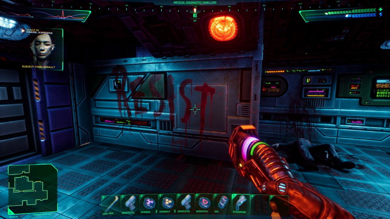 Η κίνηση του χαρακτήρα πραγματοποιείται τόσο μέσω keyboard/mouse όσο και μέσω gamepad παραμένοντας ομαλή και στις δύο περιπτώσεις. Ο hacker της ιστορίας μας θα περιπλανηθεί αρχικά στα κατώτερα decks του Citadel όπου θα αντιμετωπίσει ανδροειδή, robots αλλά και το πλήρωμα του σταθμού το οποίο όμως έχει αφομοιωθεί από την SHODAN μετά από χειρουργικές παρεμβάσεις στα σώματά τους -ο ορισμός του body horror. Όλα τα παραπάνω θα σας επιτεθούν χωρίς ενδοιασμούς και ο καθένας απαιτεί διαφορετική οπλική ισχύ για αποτελεσματική εξουδετέρωση. Με την πάροδο του χρόνου ο ήρωάς μας θα προχωρήσει και στα επόμενα επίπεδα του Citadel αναζητώντας την SHODAN. Ένα στοιχείο που ασφαλώς θα προκαλέσει ιδιαίτερα τους νεότερους παίκτες είναι οι melee μάχες όπου, και όπως συμβαίνει και στην πρωτότυπη έκδοση του 1994, απαιτούνται ιδιαίτερα αντανακλαστικά καθώς θα πρέπει να υποχωρείτε αμέσως μετά την επίθεσή σας ώστε να αποφεύγετε τις αντίστοιχες του αντιπάλου. Όσον αφορά τον ranged οπλισμό, τα πράγματα είναι πιο ξεκάθαρα με αναλώσιμα ammo και energy stacks. Tα πρώτα τα ανακτάτε κατά τη διαδρομή σας και τα δεύτερα είτε με τη χρήση item based batteries είτε σε ειδικούς σταθμούς όπου θα γίνεται αναπλήρωση της ενέργειας. Το οπλοστάσιό σας συνοπτικά περιλαμβάνει: melee weapons (lead pipe, monkey wrench laser rapier), firearms (Skorpion Machine Gun, Minipistol, SK-27 shotgun και άλλα), grenades (Frag grenade, EMP grenade, Gas Grenade και άλλες) και, τέλος, energy weapons (Plasma Rifle, SparQ Beam και άλλα). Υπάρχει ένα άτυπο stealth system είτε με crouch, εφόσον δεν βρίσκεστε στο οπτικό πεδίο του αντιπάλου, είτε καλυπτόμενοι από αντικείμενα και γωνίες ώστε να επιτίθεστε με μεγαλύτερη ασφάλεια.