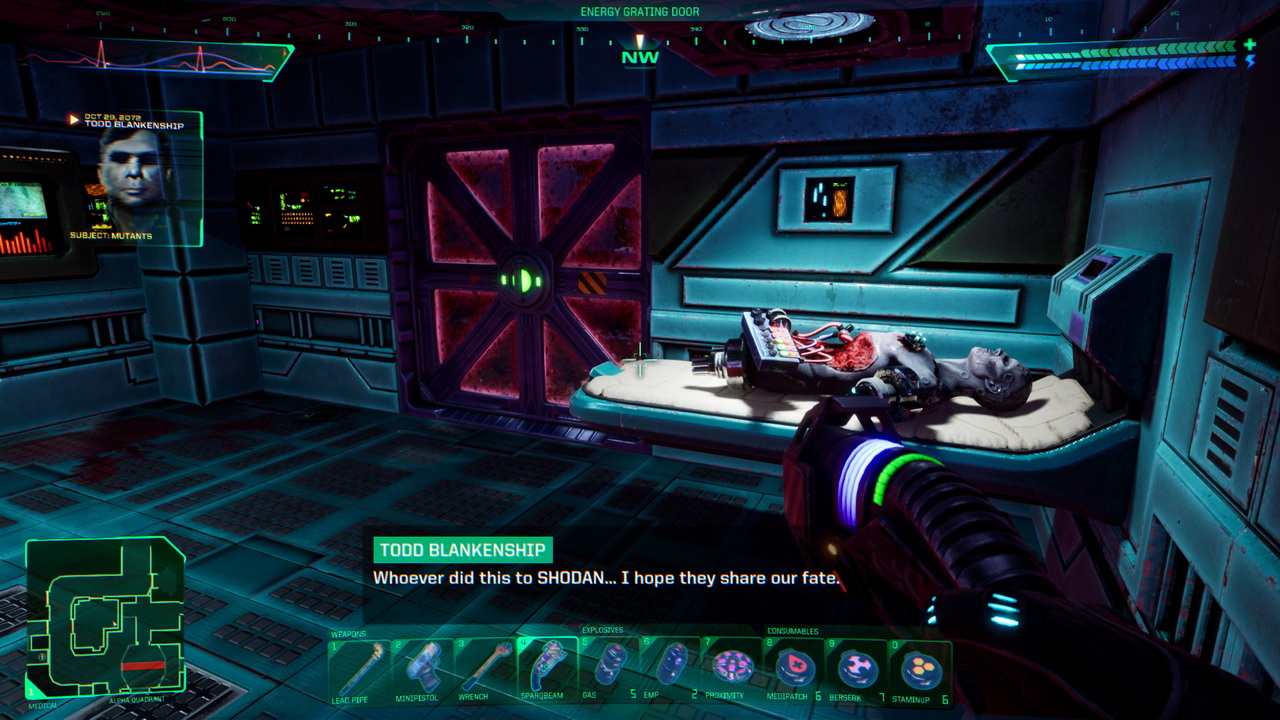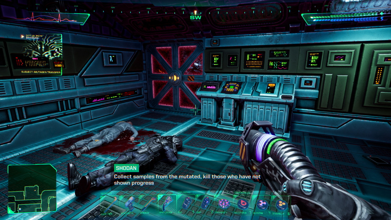 Κλασικό μοτίβο της SHODAN αποτελεί η φωνή της, την οποία υποδύεται για μια ακόμα φορά η Terri Brosius (System Shock, System Shock 2, Thief series, Dishonored series, Deus Ex: Invisible War και άλλα), και ιδιαίτερα η δυσλειτουργική και διακοπτόμενη πολλές φορές ομιλία της προκαλώντας ακόμα περισσότερο την ανησυχία στον παίκτη. Η εξερεύνηση στους διαδρόμους, τα δωμάτια, τους ορόφους, τις υπόγειες καταπακτές και τα μυστικά περάσματα εξάπτουν τη φαντασία, προκαλούν το παίκτη με τον τελευταίο να δημιουργεί αλλεπάλληλα save states για να εξορκίσει την ανασφάλεια. Ο χάρτης προσφέρει όλες εκείνες τις απαραίτητες πληροφορίες ώστε να κινηθείτε απρόσκοπτα στα σημεία ενδιαφέροντος διαθέτοντας τις απαραίτητες. Το inventory management αποτελεί στοιχείο εκ των ων ουκ άνευ της σειράς καθώς είναι περιορισμένο και θα πρέπει να αποφασίσετε ποια από τα αντικείμενα θα διατηρήσετε, θα ανακυκλώσετε ή απλά θα απορρίψετε. Σύντομα, βέβαια, θα έχετε στη διάθεσή σας και φωριαμούς ούτως ώστε να τα αποθηκεύετε κατά το δοκούν.